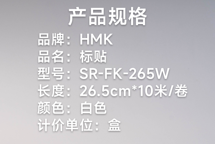 HMK SR-FK-265W 26.5cm*10m 1卷/盒 标签标贴 1.00 卷/盒 (计价单位:盒) 白色 白色