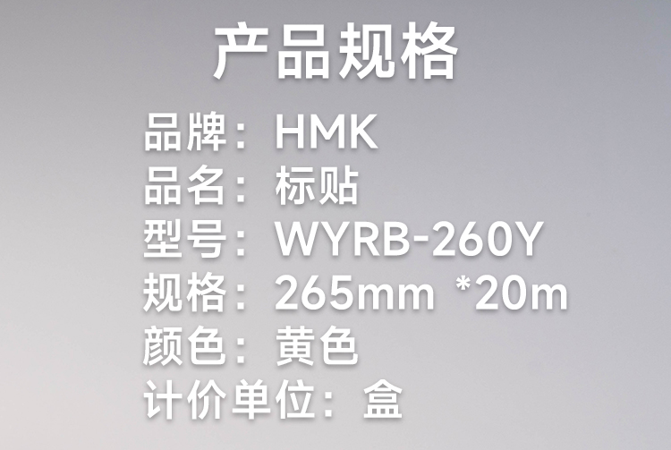 HMK WYRB-260Y 265mm*20m 1卷/盒 标贴 1.00 卷/盒 (计价单位:盒) 黄色 黄色