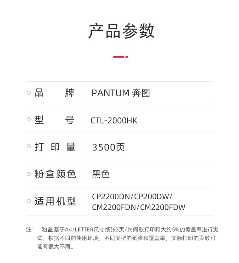 奔图(PANTUM) CTL-2000HK 打印量3500页 适用于CP2200DW/CM2200FDW/CP2200DN/CM2200FDN 粉盒 (计价单位:只) 黑色 黑色