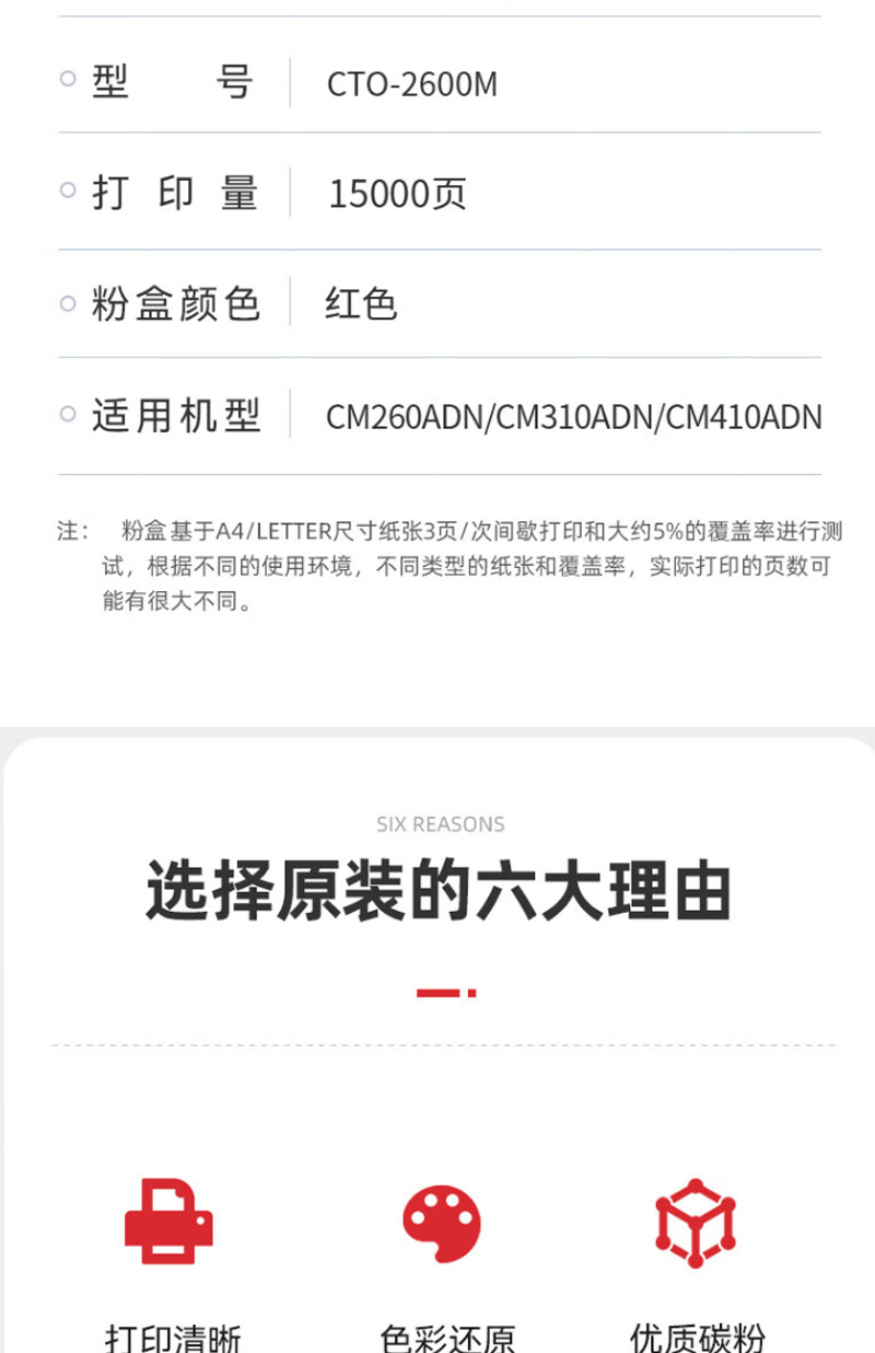 奔图(PANTUM) CTO-2600M 15000页 适用机型CM260ADN/CM310ADN/CM410ADN 原装激光碳粉盒 1.00 只/支 (计价单位:支) 红色 红色