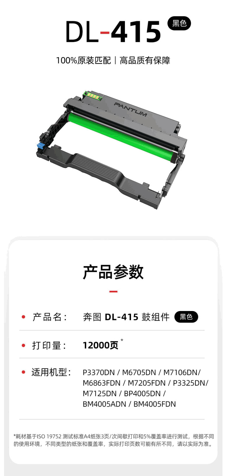 奔图(PANTUM) DL-415 打印量12000页 适用P3370DN/M6705DN/M686 鼓组件 (计价单位:只) 黑色 黑色