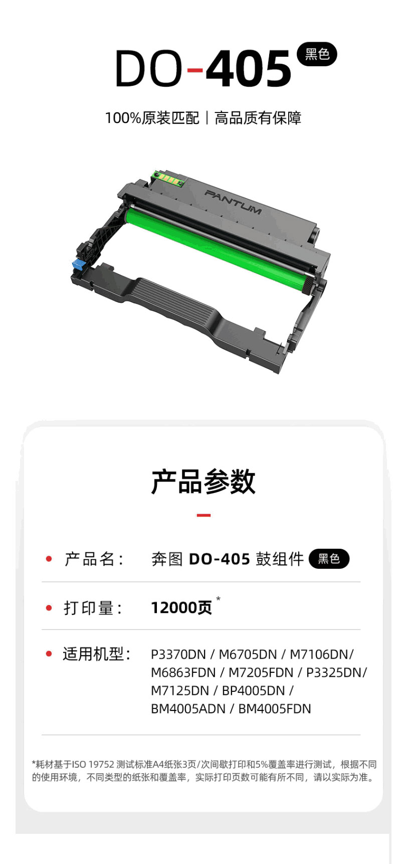 奔图(PANTUM) DO-405 打印量12000页 适用于P3370DN/M6705DN/M6863FDN/M7106DN/M7205FDN 鼓架 (计价单位:只) 黑色 黑色