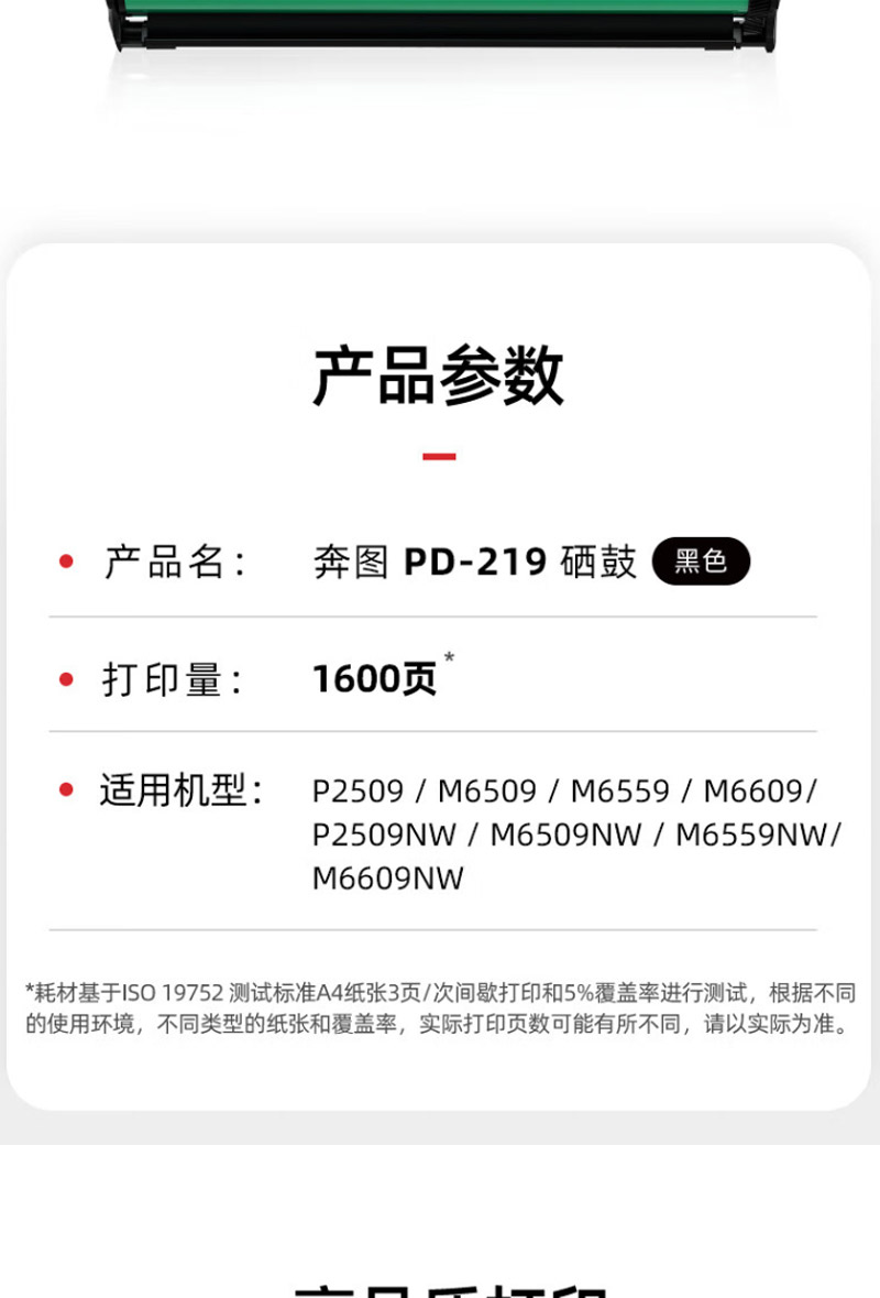 奔图(PANTUM) PD-219 打印量1600页 适用P2509/P2509NW 碳粉盒 1.00 只/支 (计价单位:支) 黑色 黑色