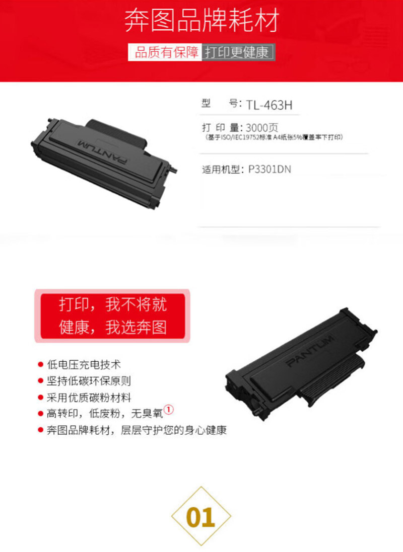 奔图(PANTUM) TL-463H 3000页 (适用于P3301DN) 原装黑色大容量粉盒 1.00 只/支 (计价单位:支) 黑色 黑色