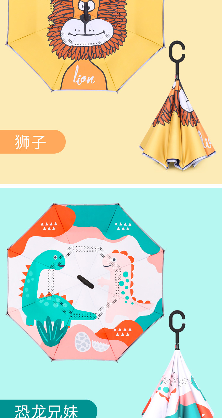 美度儿童反向伞双层卡通小学生雨伞M6016 58.5cm*8K/把 狮子