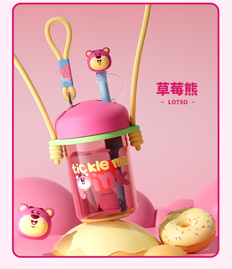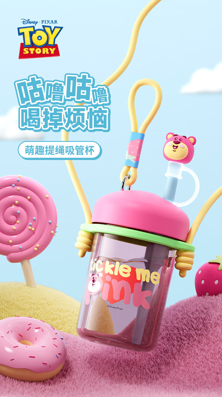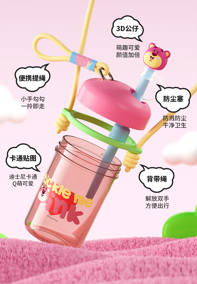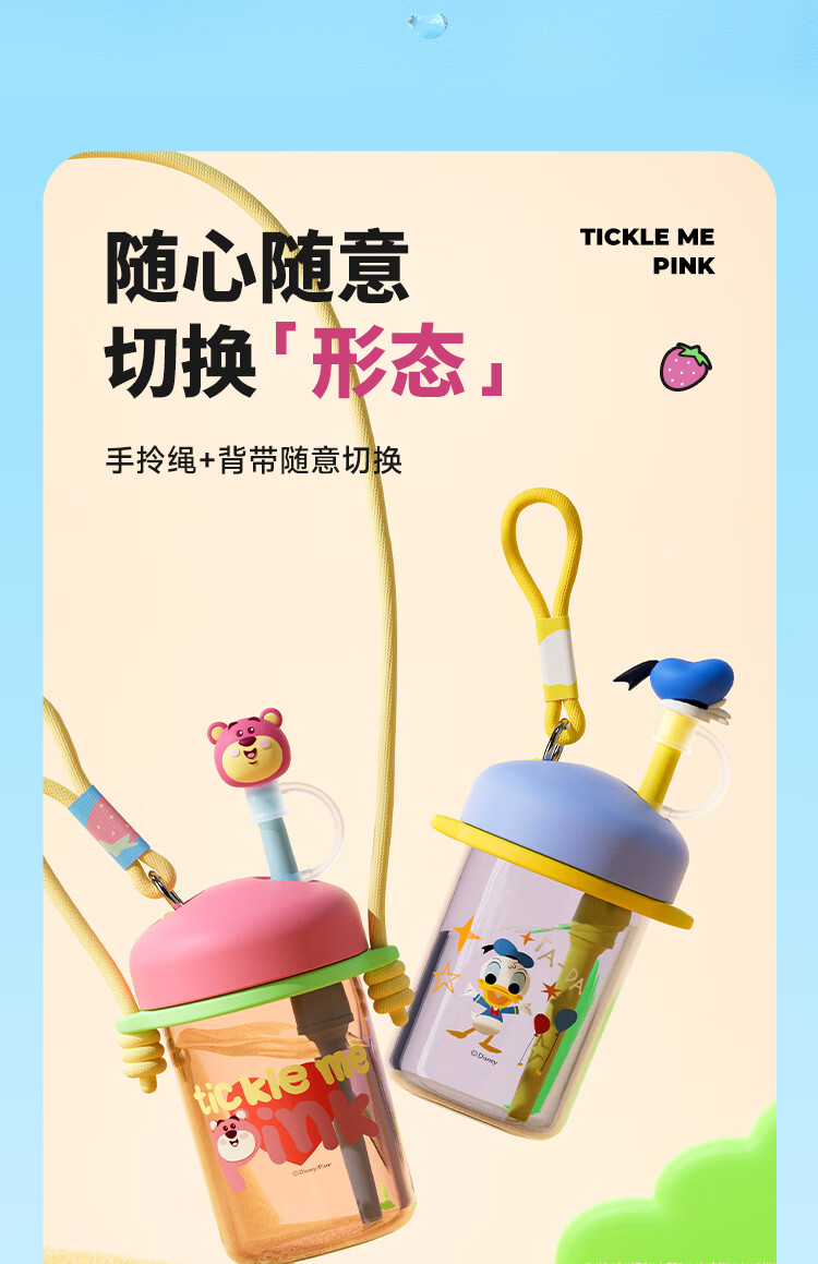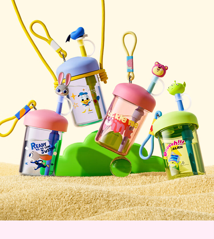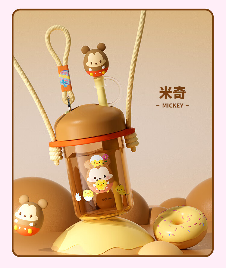 迪士尼(Disney)水杯夏季萌趣提绳吸管杯男女孩水杯540ml HM8114 (单位:个) 棕色