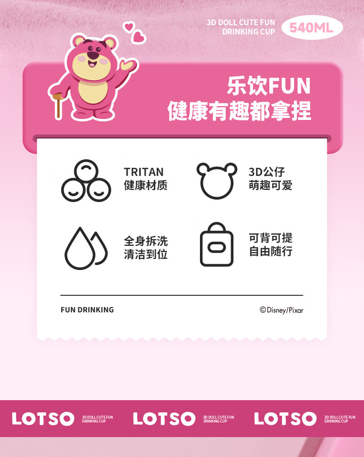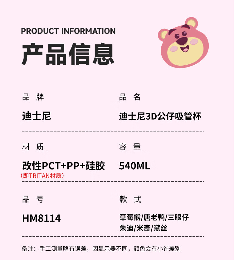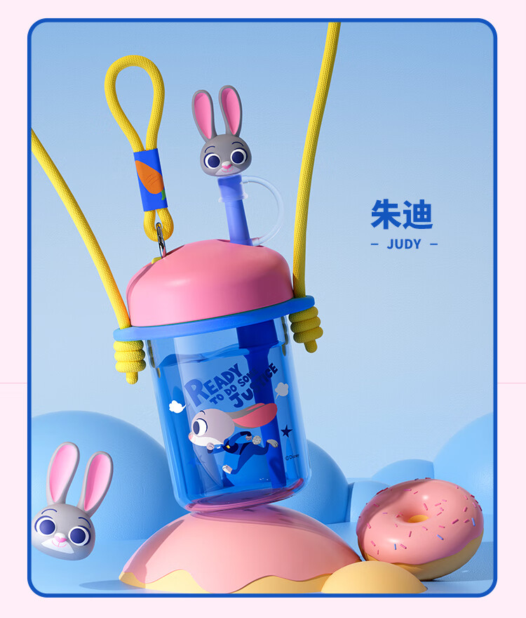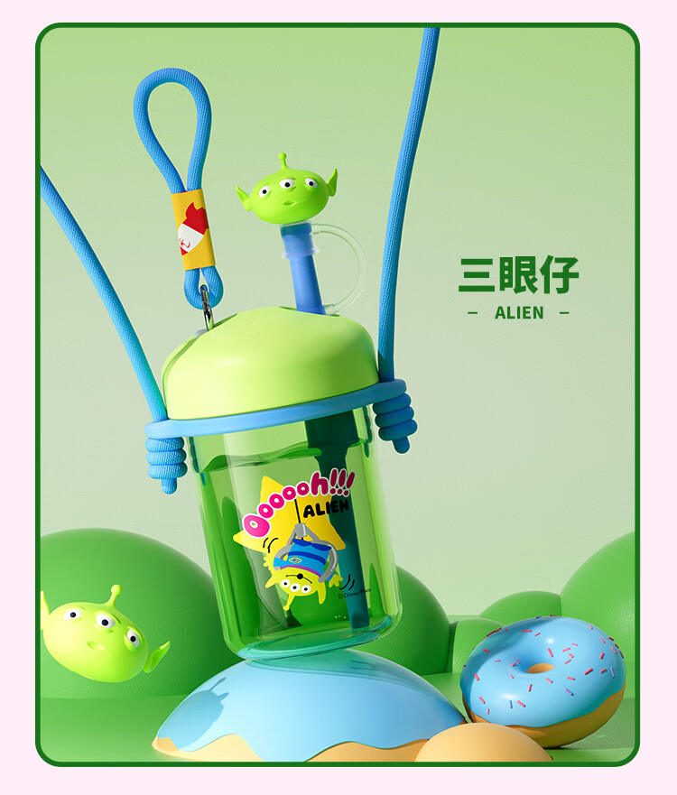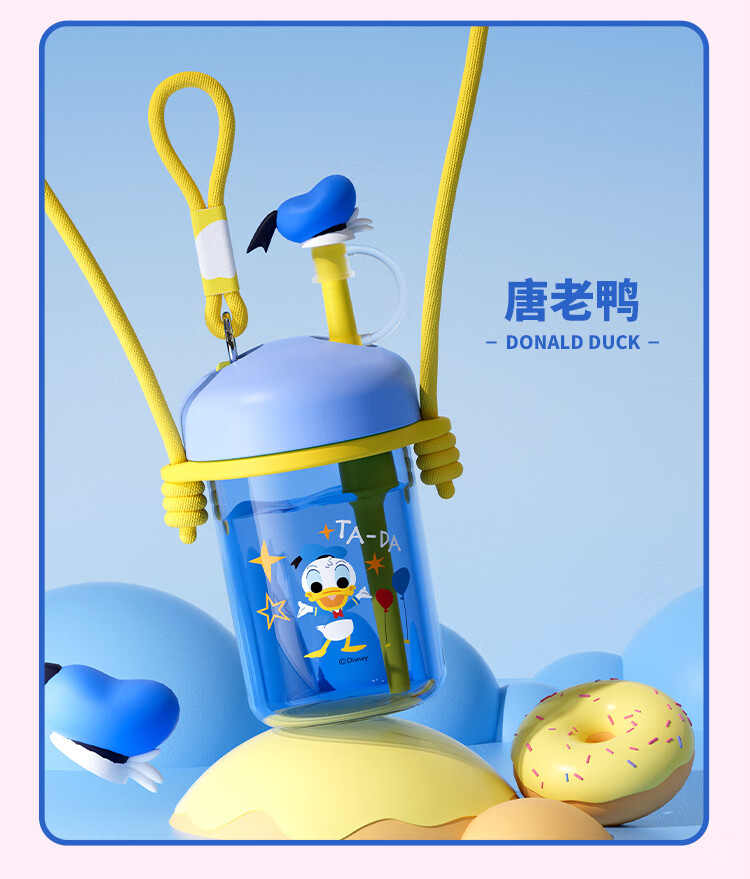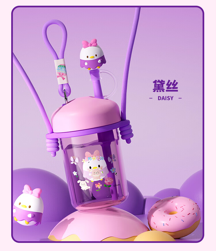 迪士尼(Disney)水杯夏季萌趣提绳吸管杯男女孩水杯540ml HM8114 (单位:个) 棕色