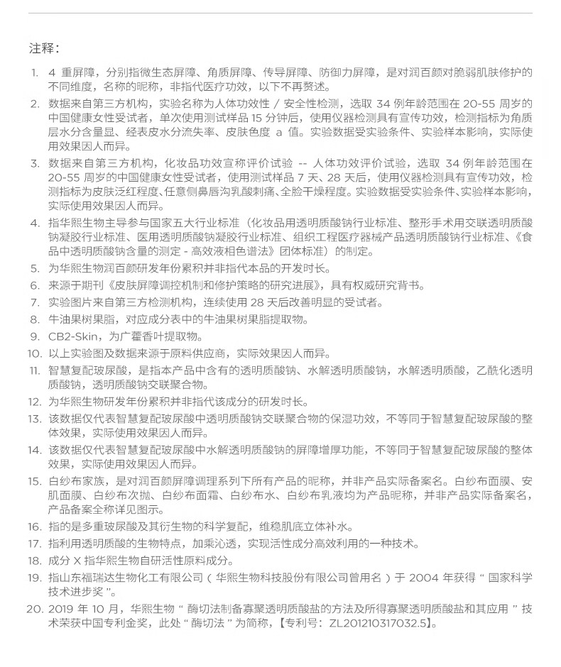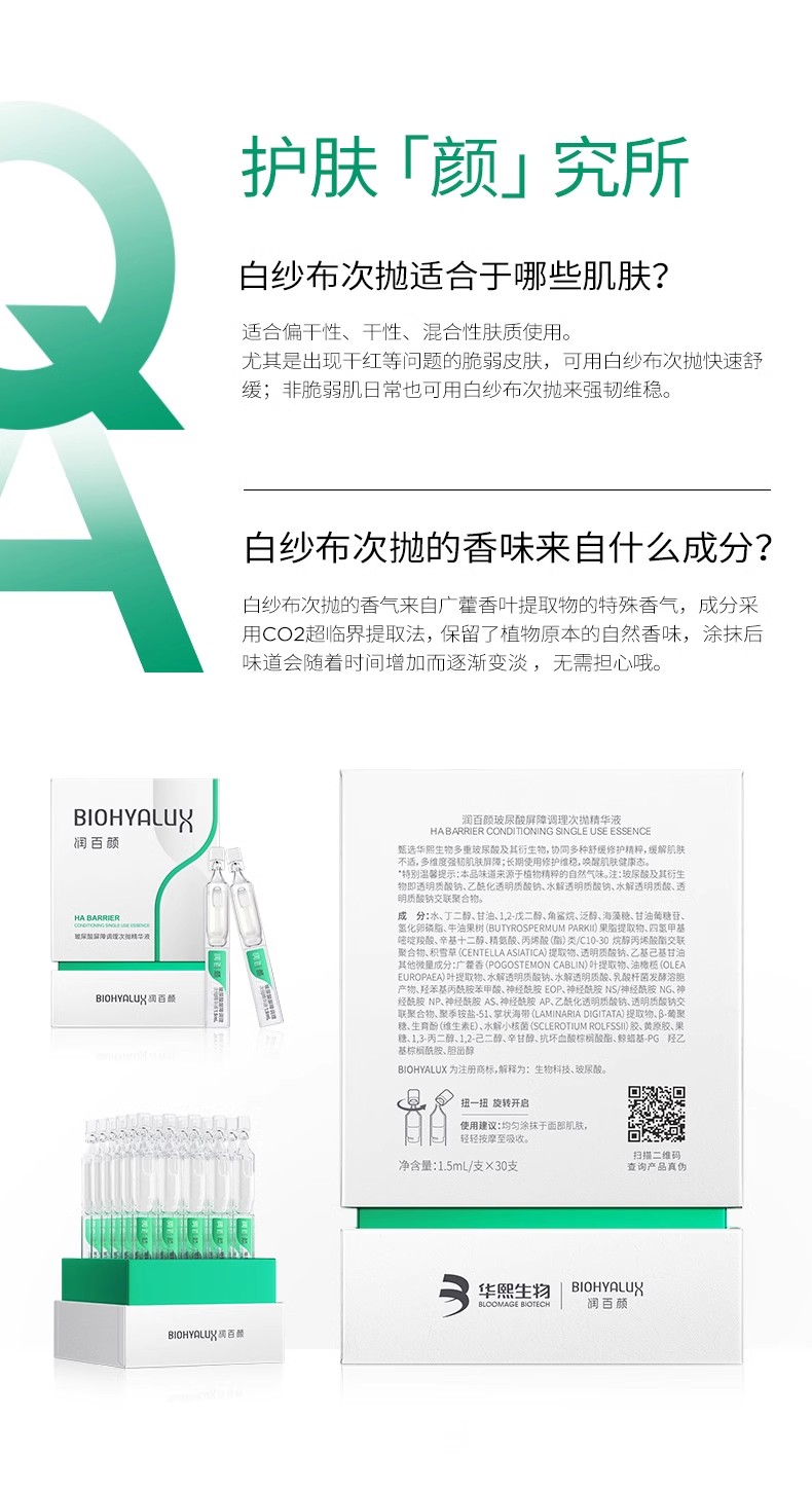 润百颜玻尿酸屏障调理白纱布次抛2.0修护精华1.5ml*30支(单位:盒)