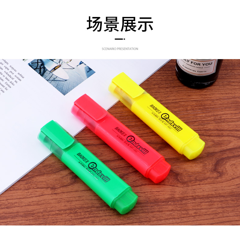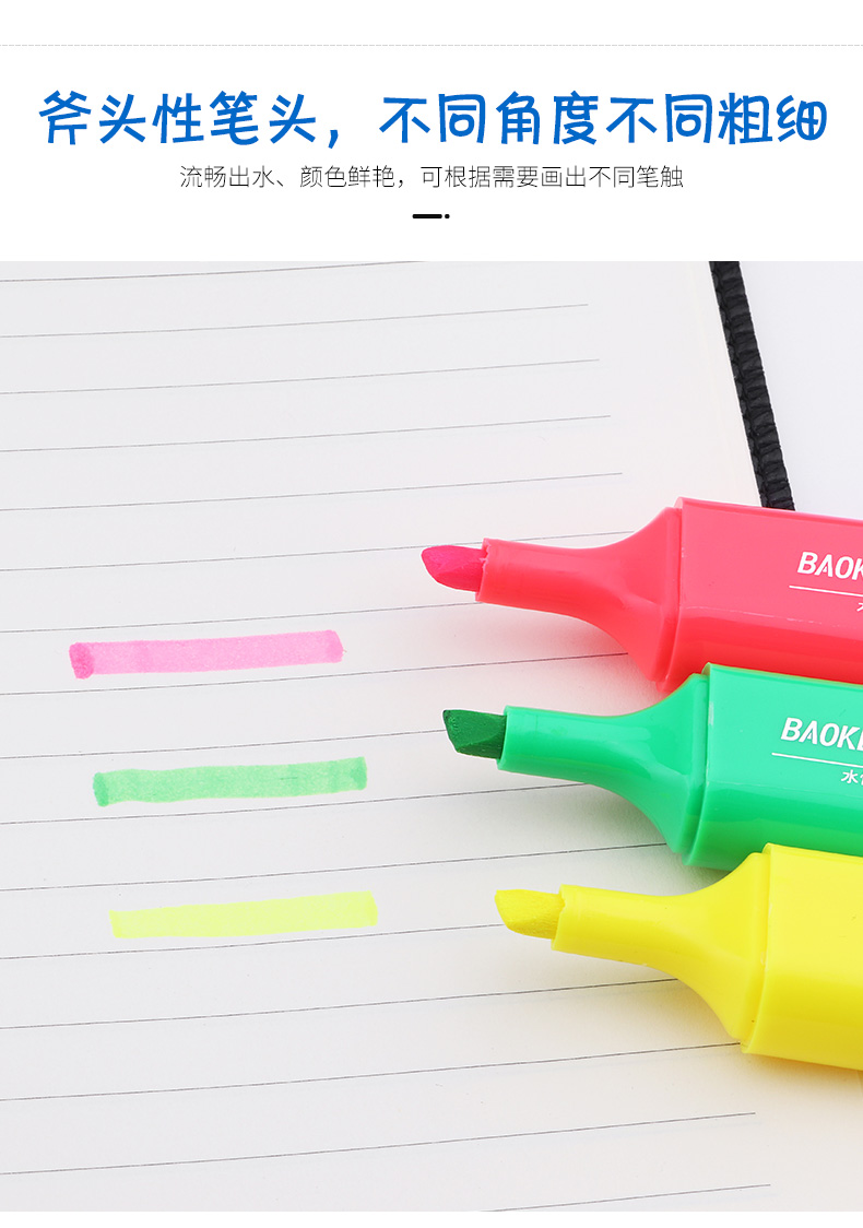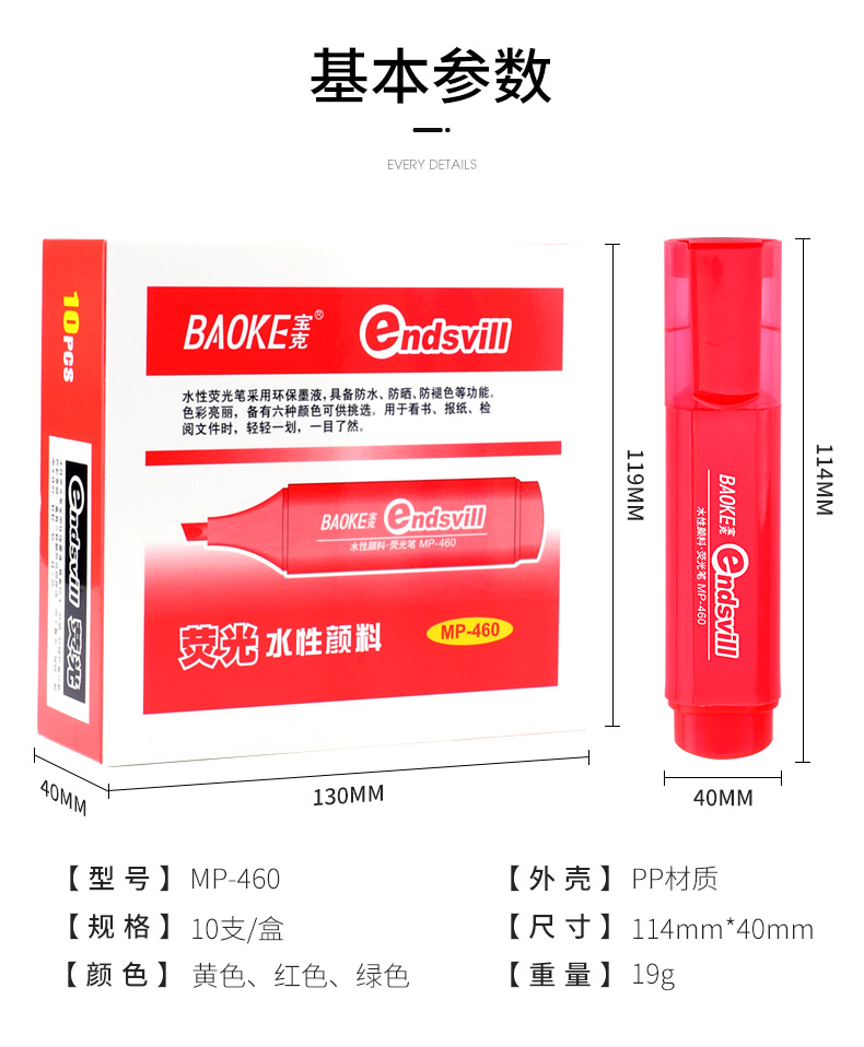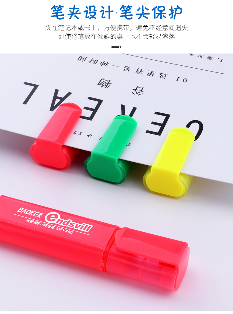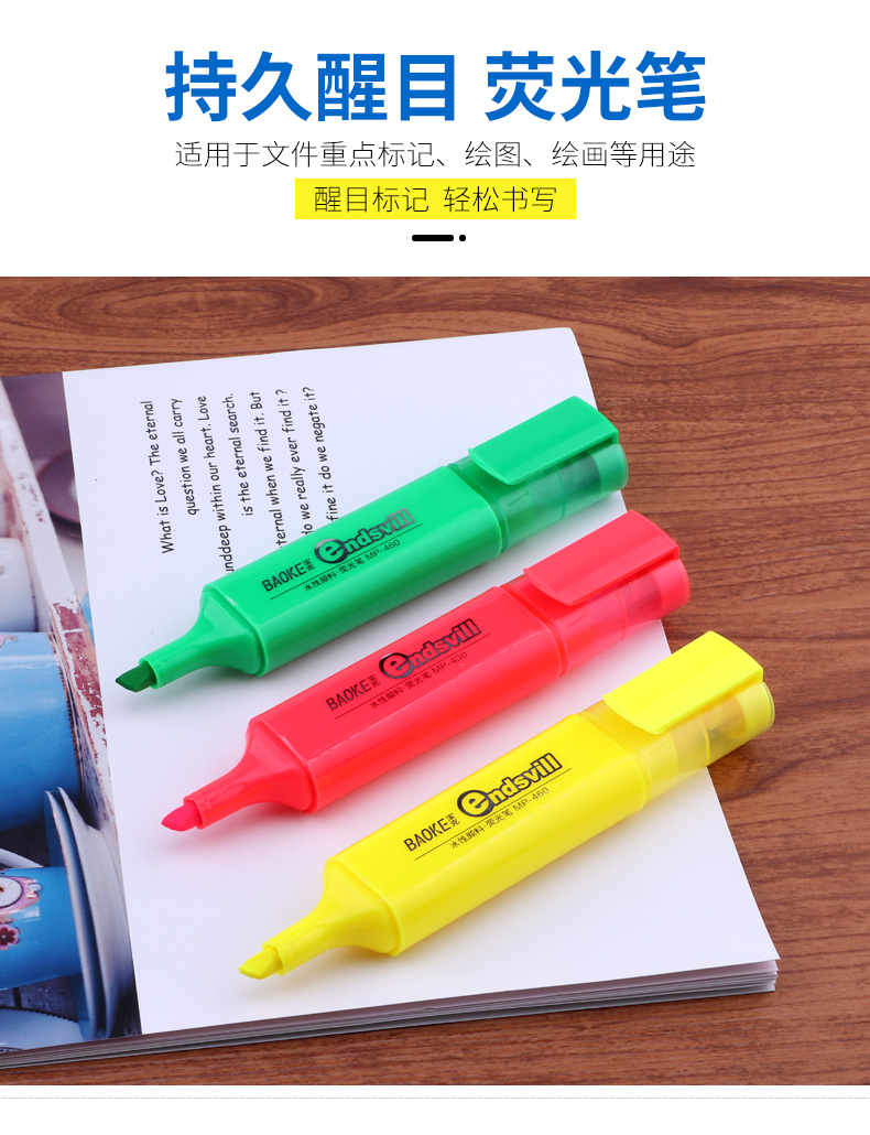 宝克(BAOKE)MP460 斜头彩色荧光笔 考试复习醒目标记笔/广告彩绘笔/涂鸦画笔 10支/盒 黄色