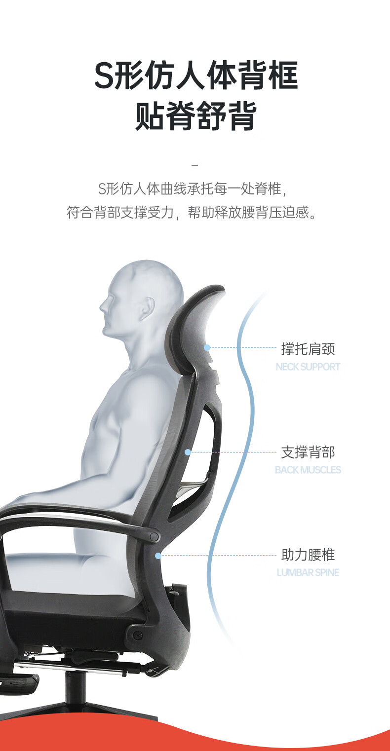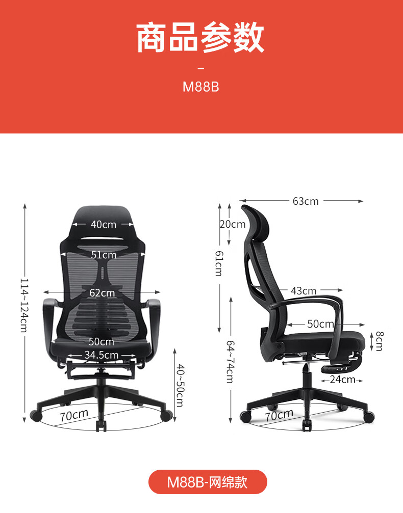 西昊M88B人体工学电脑椅 可躺午休办公椅 久坐舒服老板椅子 大角度后仰单位/张 黑色