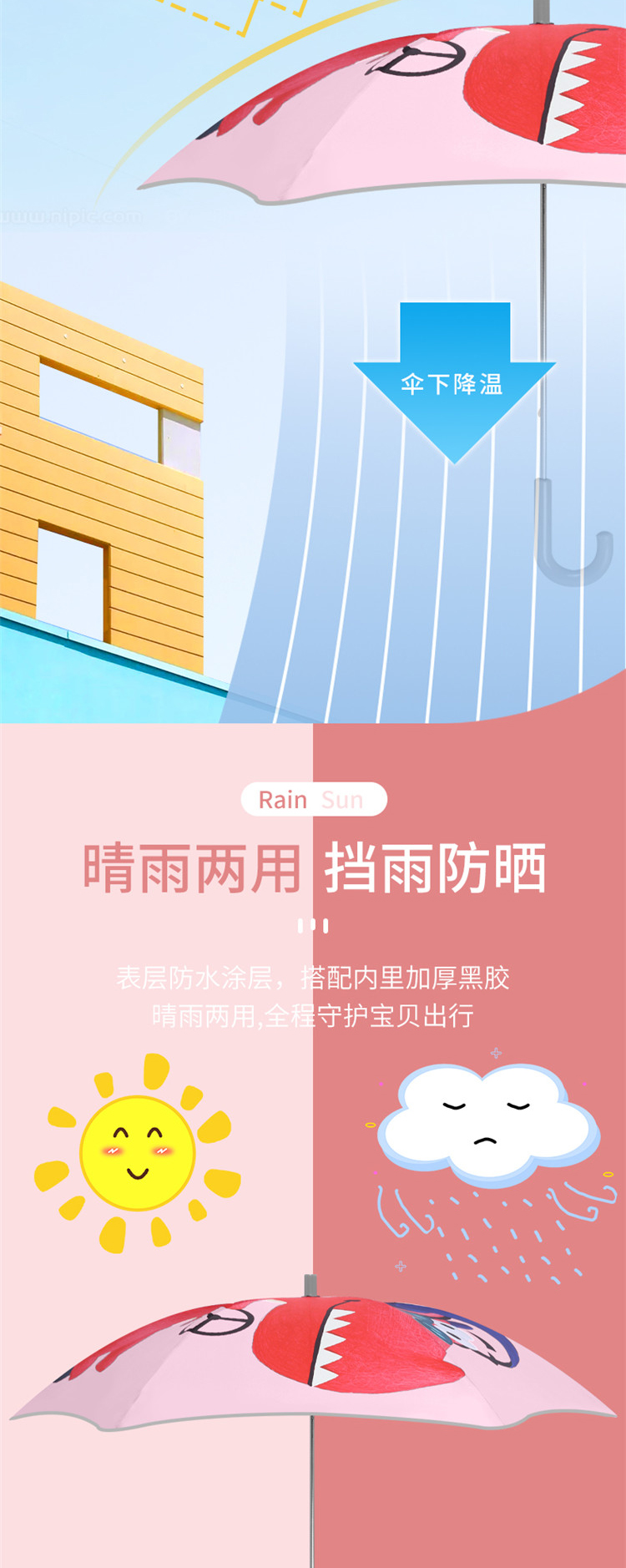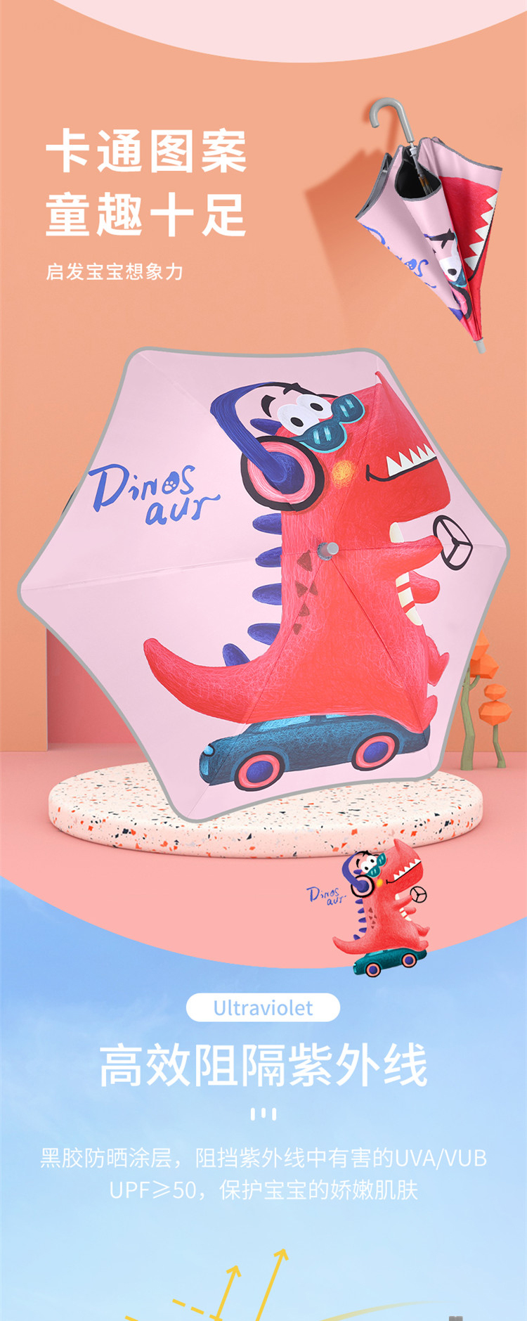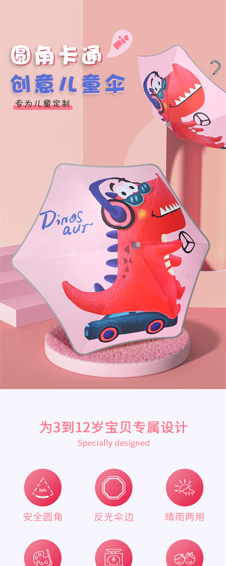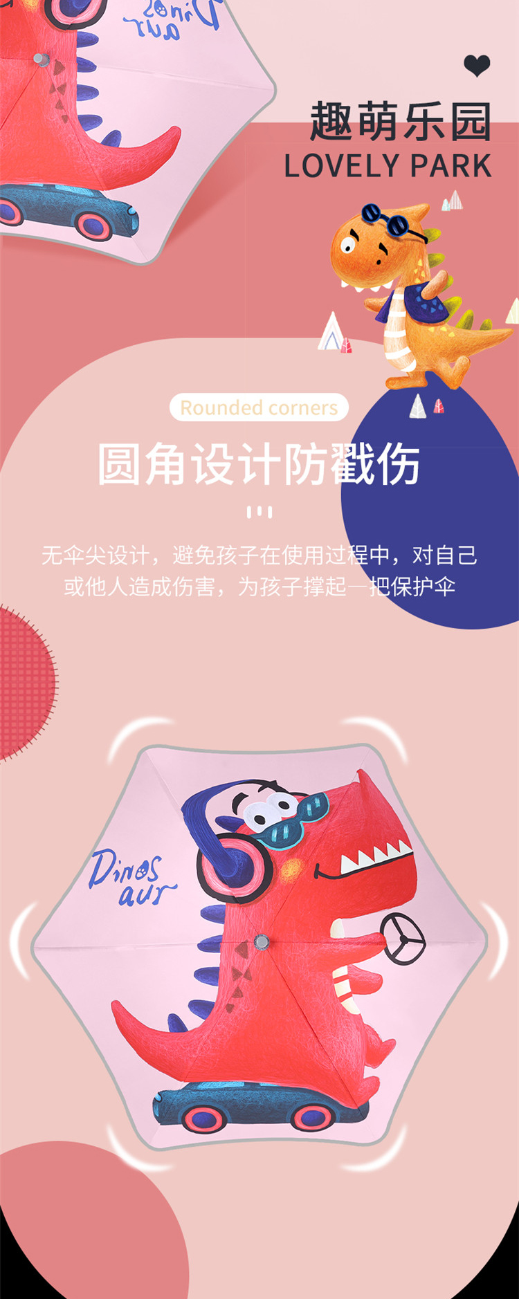 美度圆角儿童伞恐龙系列卡通学生伞M6015 50cm*6K/把 音乐恐龙