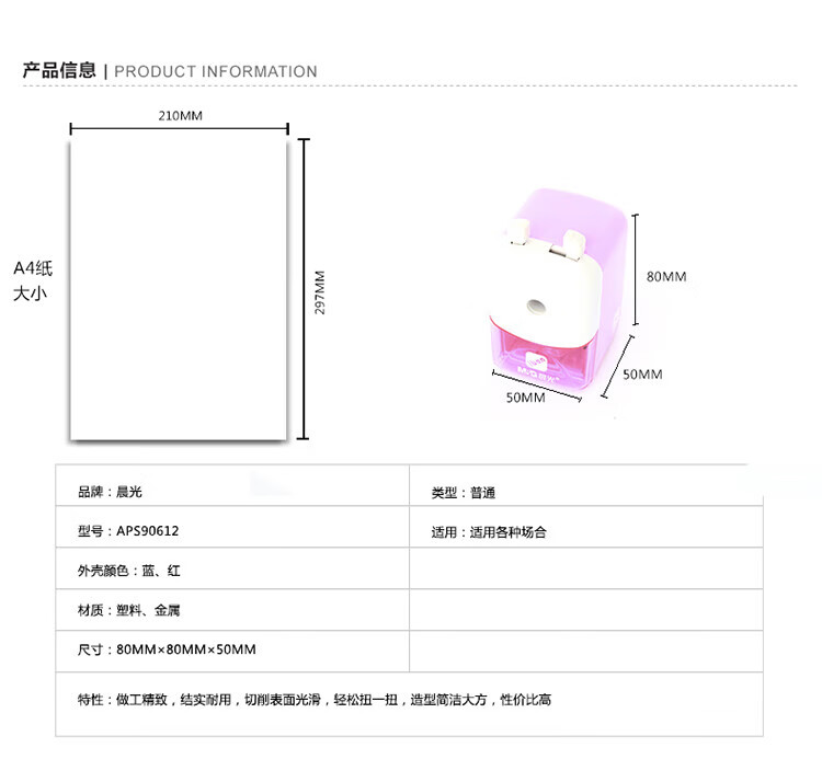 晨光 M&G 削笔器 APS90612 (蓝色、粉色) 12个/盒 (颜色混发) 两个起订