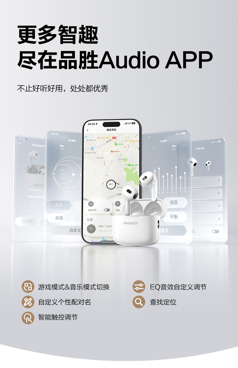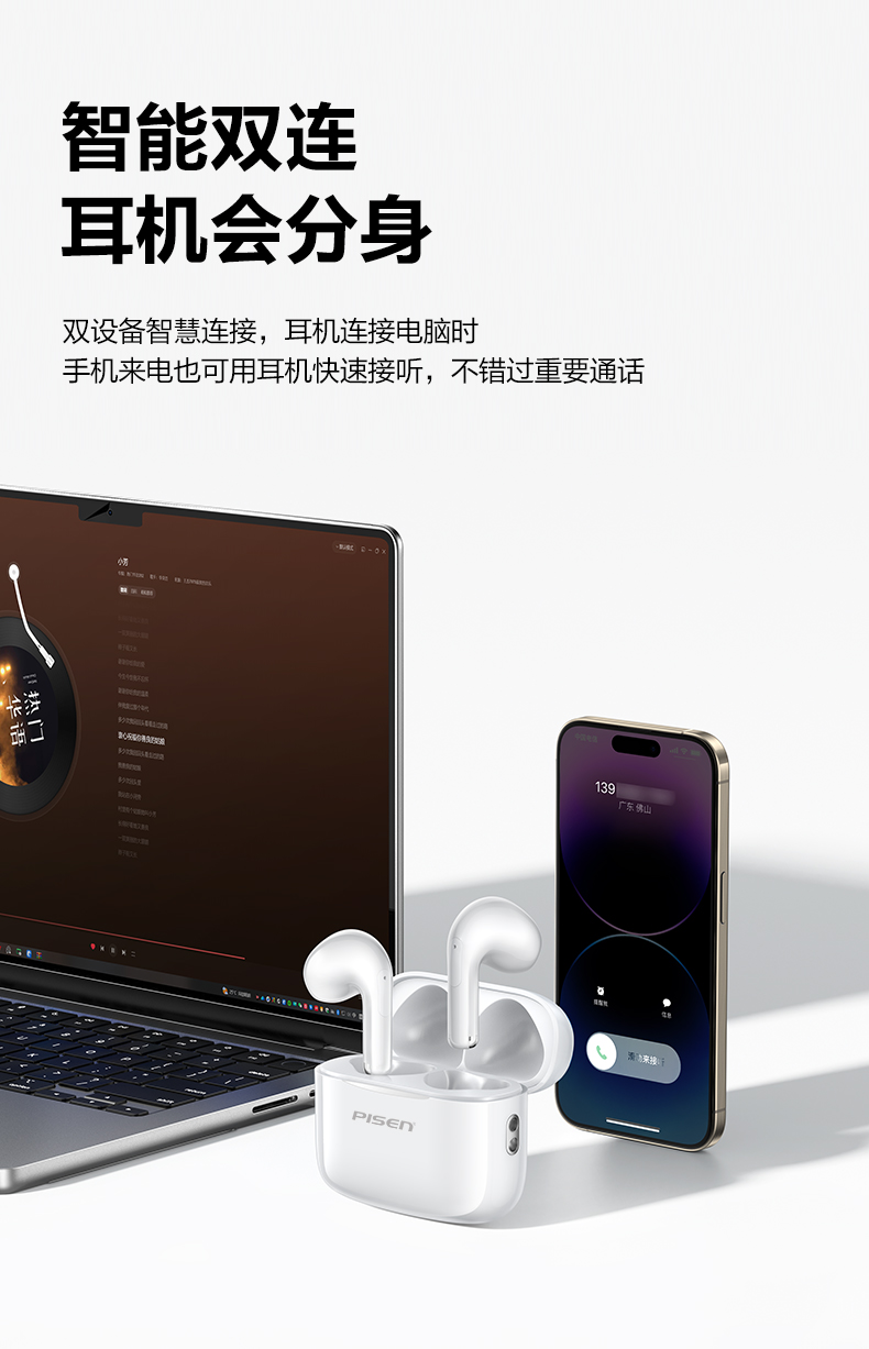 品胜(PISEN) P1Plus 30mAh 无线蓝牙耳机 云初白(单位:副)