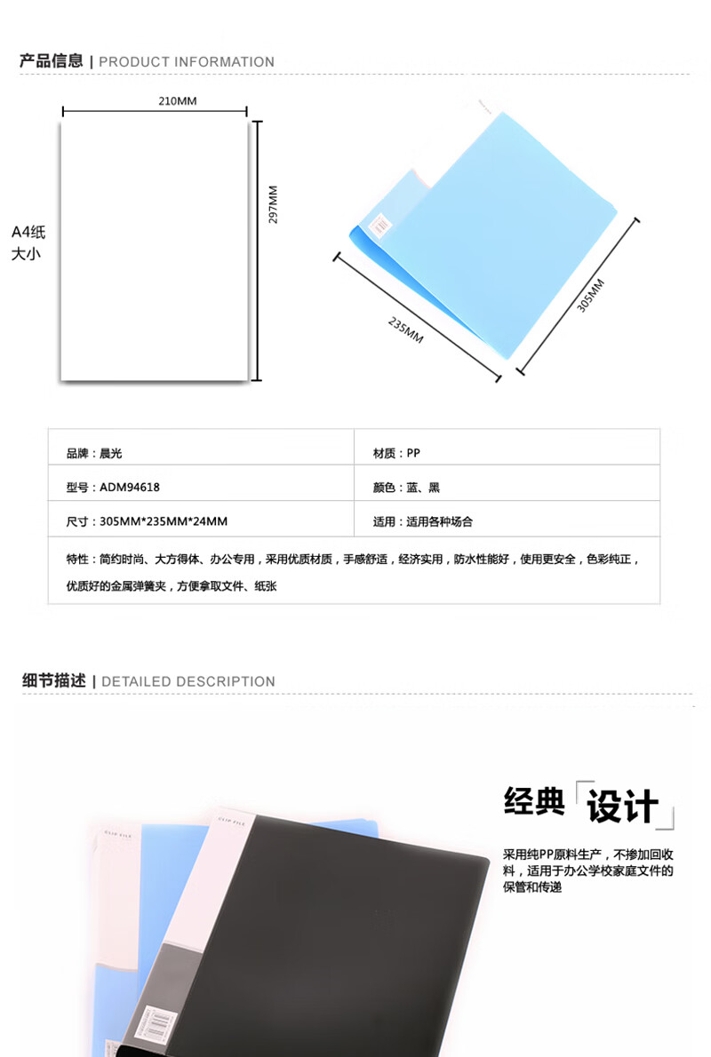 晨光(M&G)双强力夹(蓝)ADM94619B 蓝色-5个装 蓝色