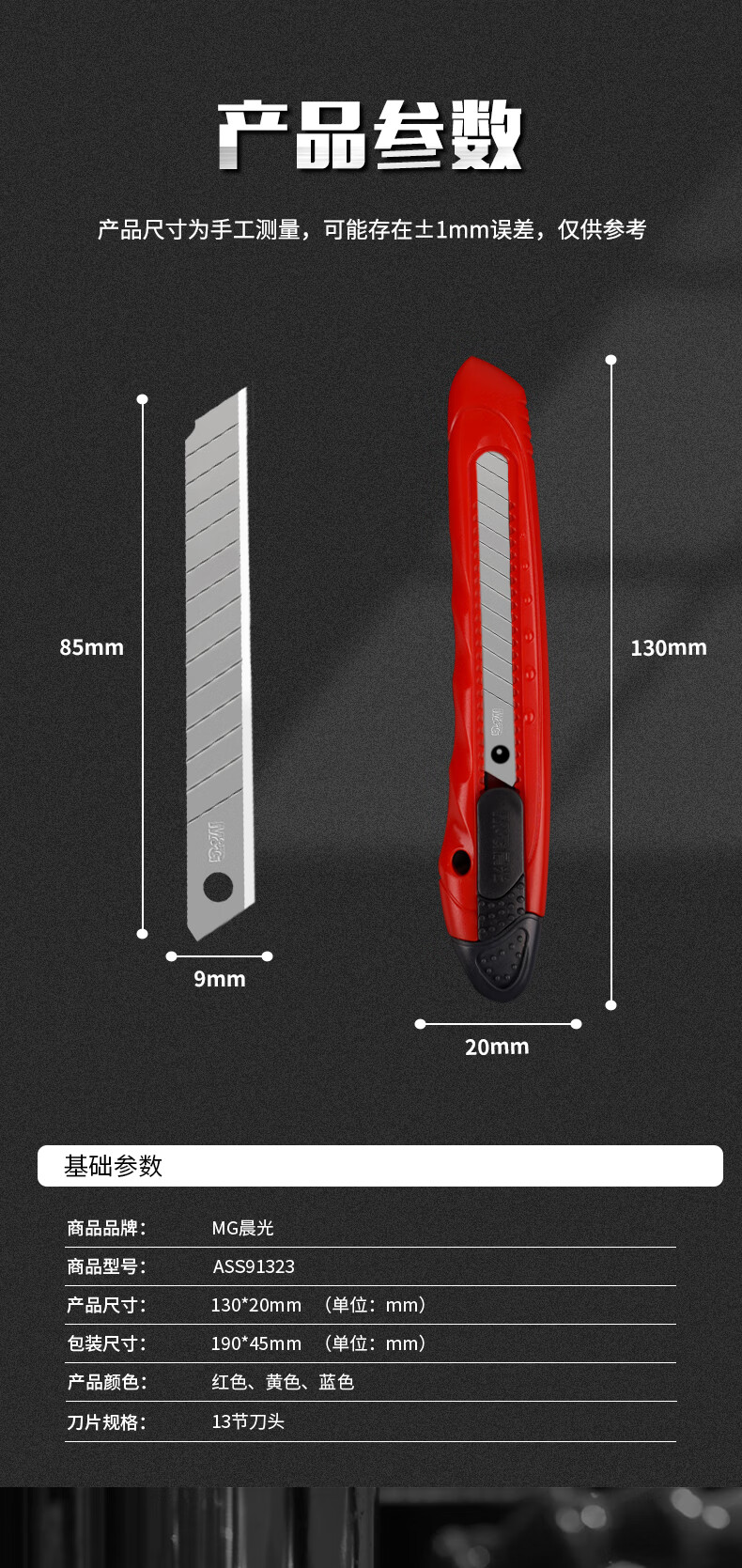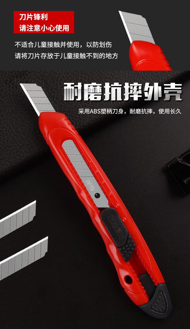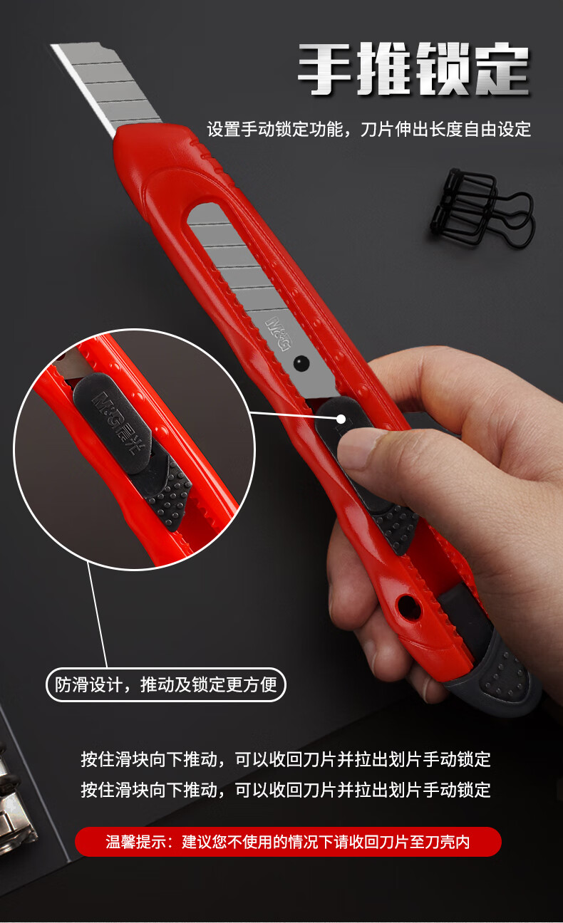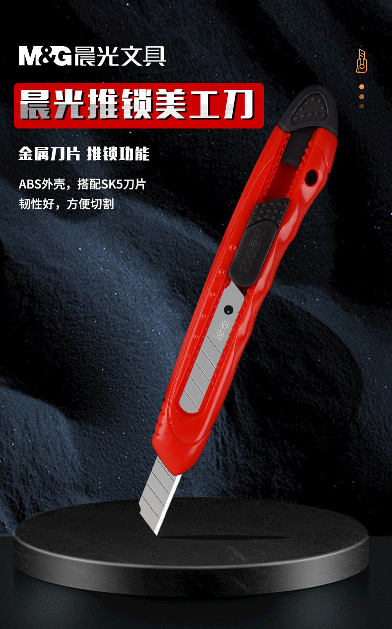 晨光(M&G)文具9mm推锁美工刀 推锁裁纸刀多功能刀子 10把装 颜色混发ASS91323