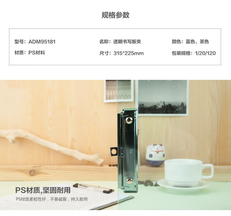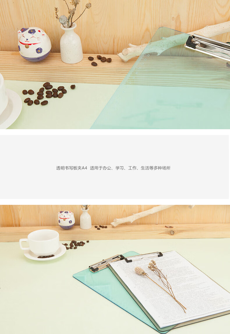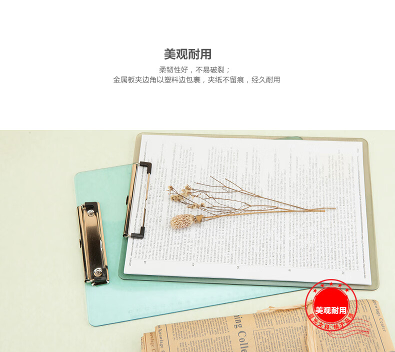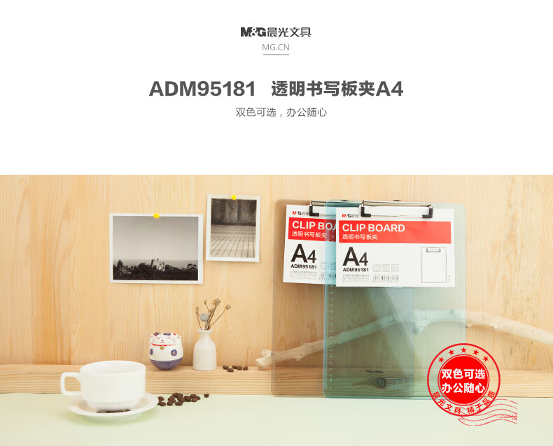 晨光(M&G)A4透明便携竖式书写板夹记事夹文件资料夹垫板 透蓝色 ADM95181 两个装 颜色混发