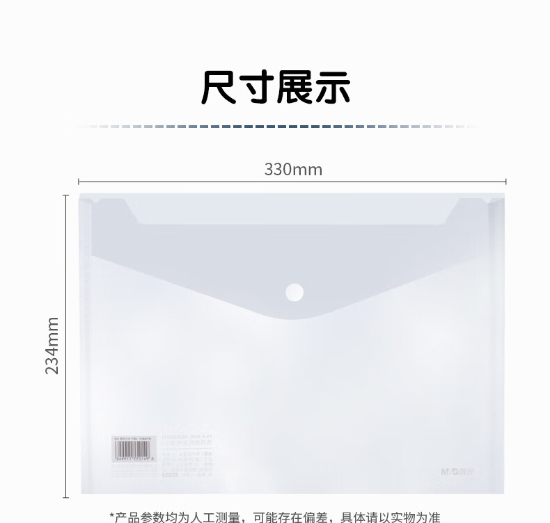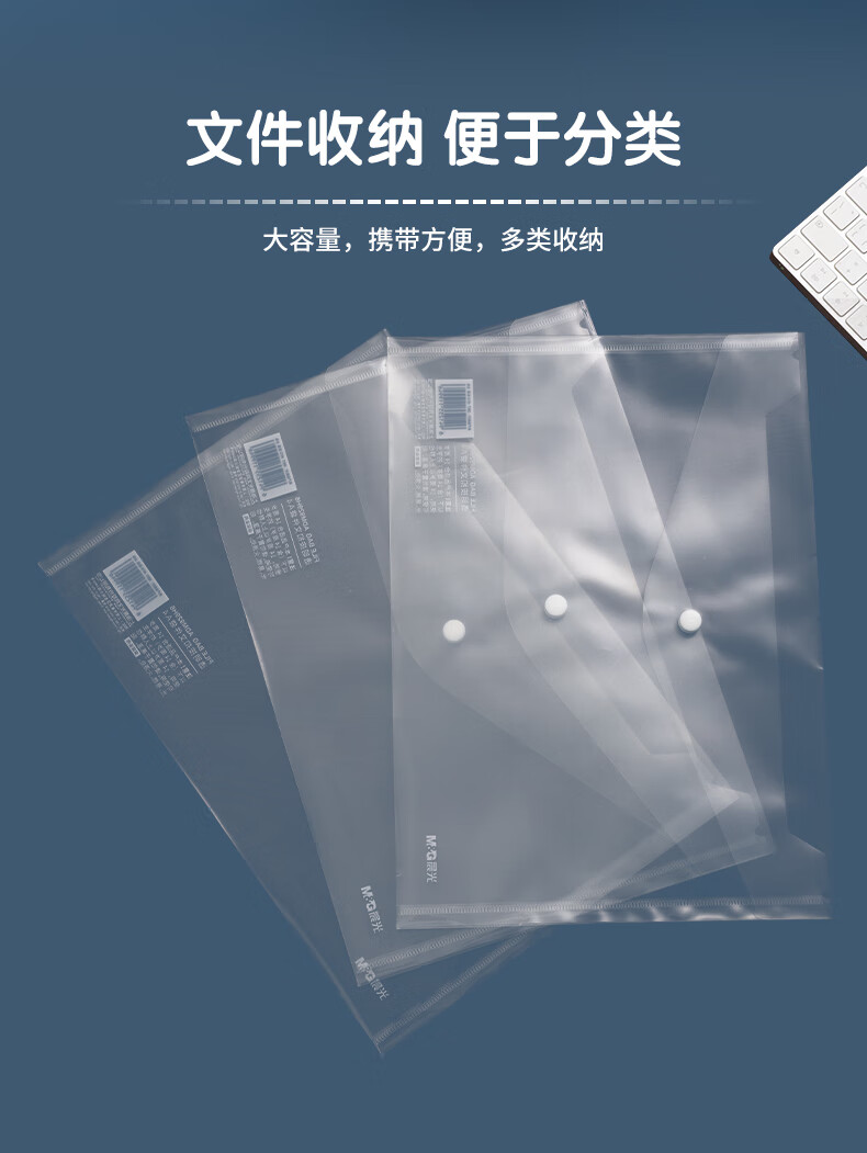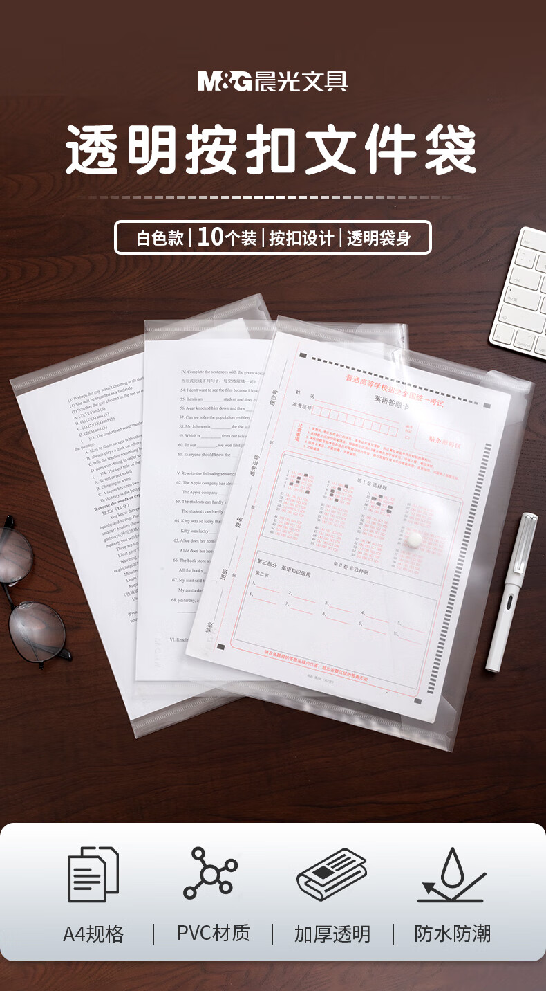 晨光(M&G)文具A4白色透明纽扣袋 按扣袋 学生试卷收纳档案袋收纳袋 10个装ADM929H6