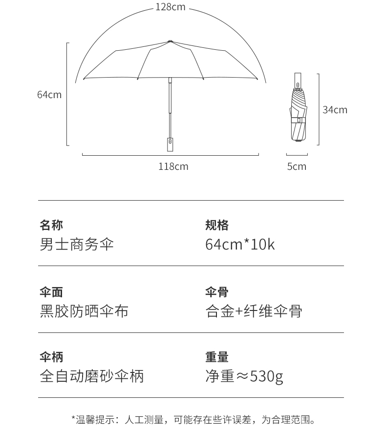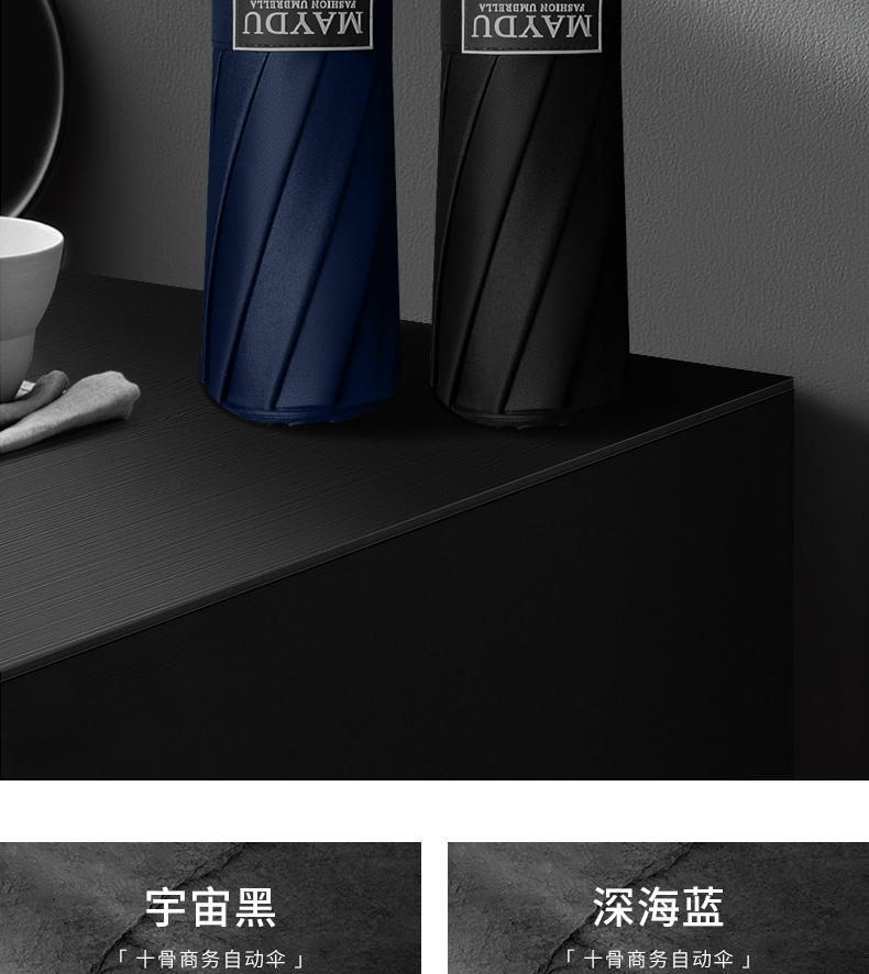 美度全自动雨伞10骨男士商务折叠伞M3015 58.5cm*10k/把 黑色