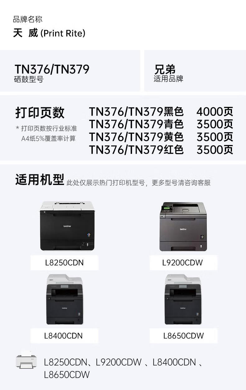 天威 TN376粉盒 适用兄弟 HL4150 4570DW MFP9465 DCP-9055CD/支 黄色
