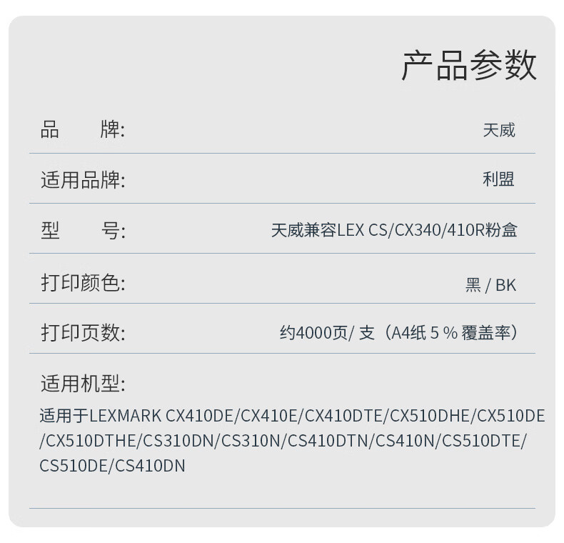 天威CS310粉盒 适用利盟CS310N/CS310DN复印机CS410N/CS410DN/支 黑色