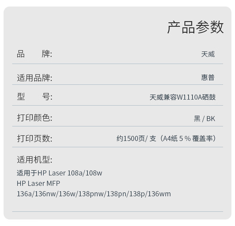 天威适用于HP 110A(W1110A)-商用装捷约黑硒鼓-带芯片/支 黑色