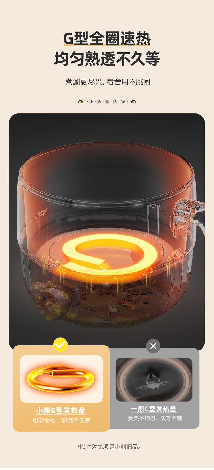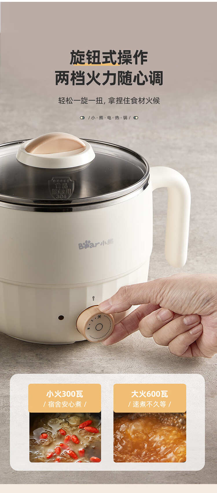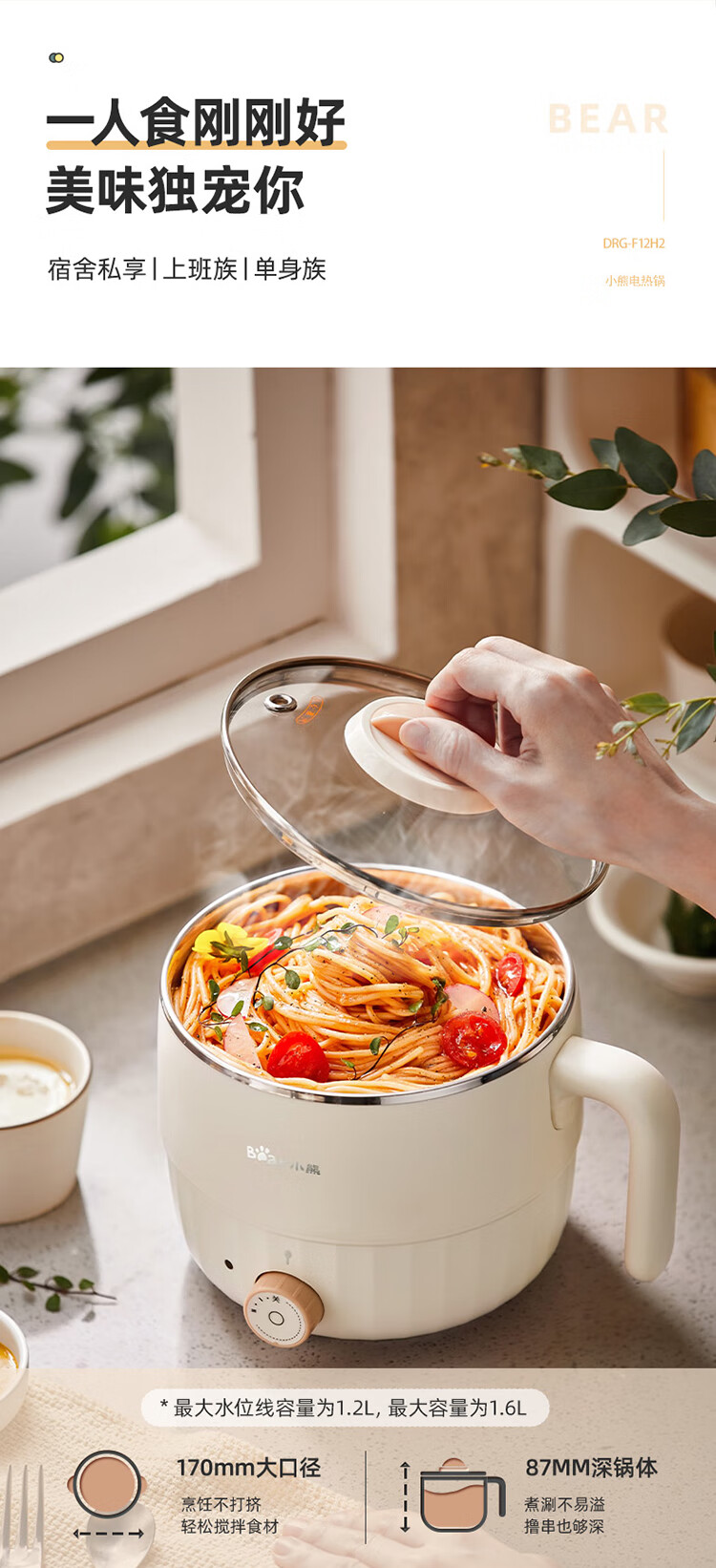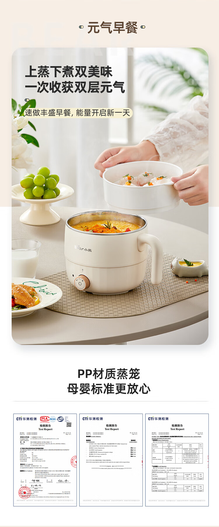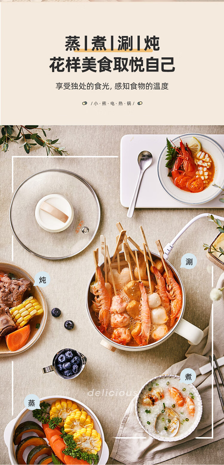 小熊(Bear)电煮锅1.6L多用途锅DRG-F12H2 配蒸笼/台 米黄色