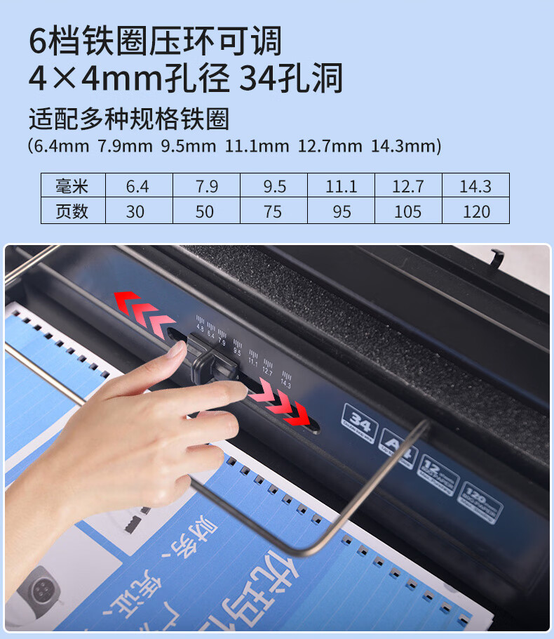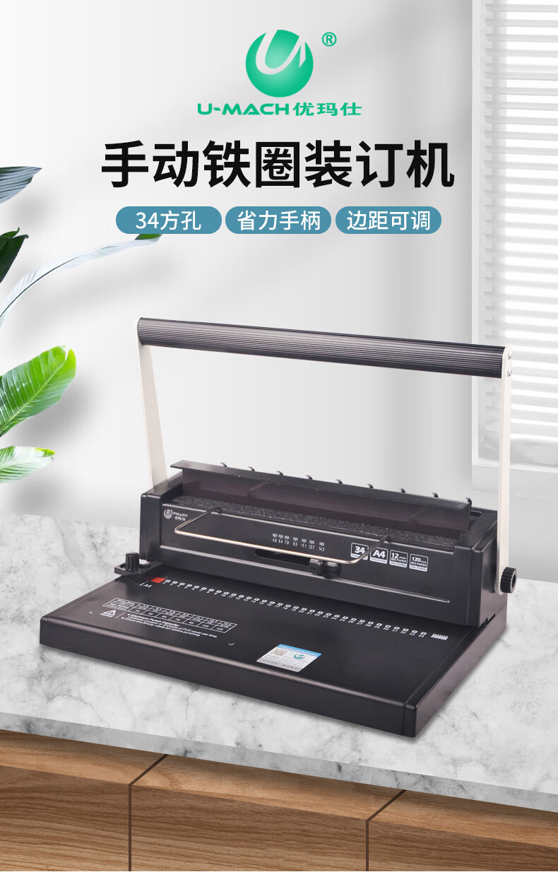 优玛仕 U-mach 铁圈装订机 U-T51 34孔 装订厚度140页 手动 (黑白)/台 黑色