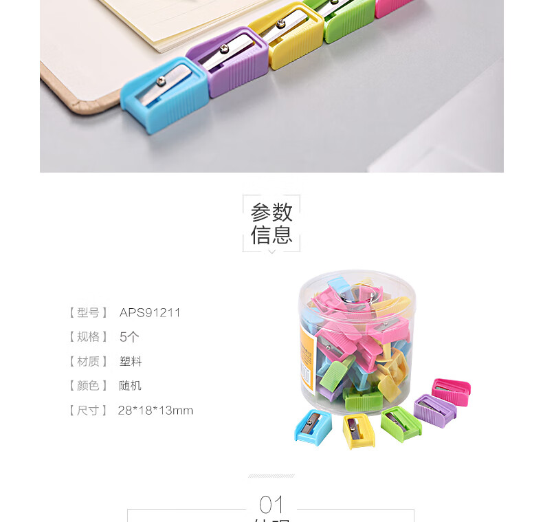 晨光 M&G 单孔塑料卷笔刀 APS91211 (红色、黄色、蓝色、绿色、紫色) 50个/盒 彩色