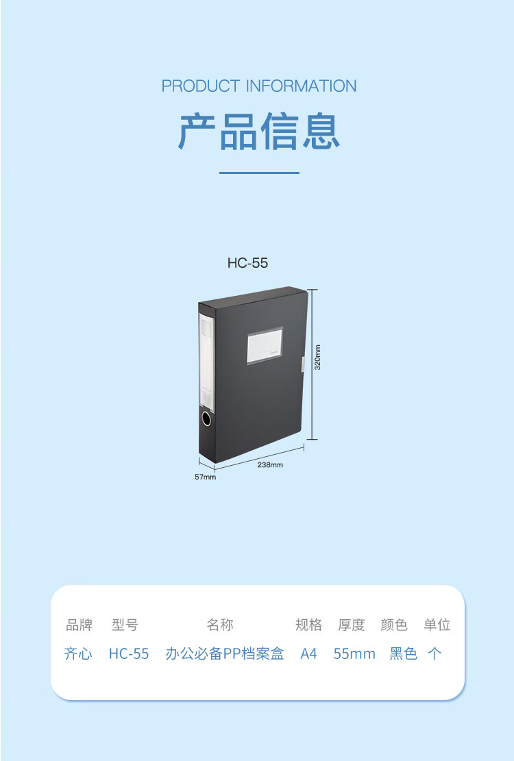 齐心 Comix 标准型文件盒 HC-55 A4 55mm (黑色) 个 黑
