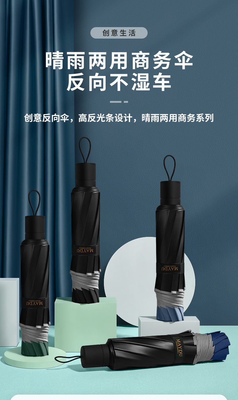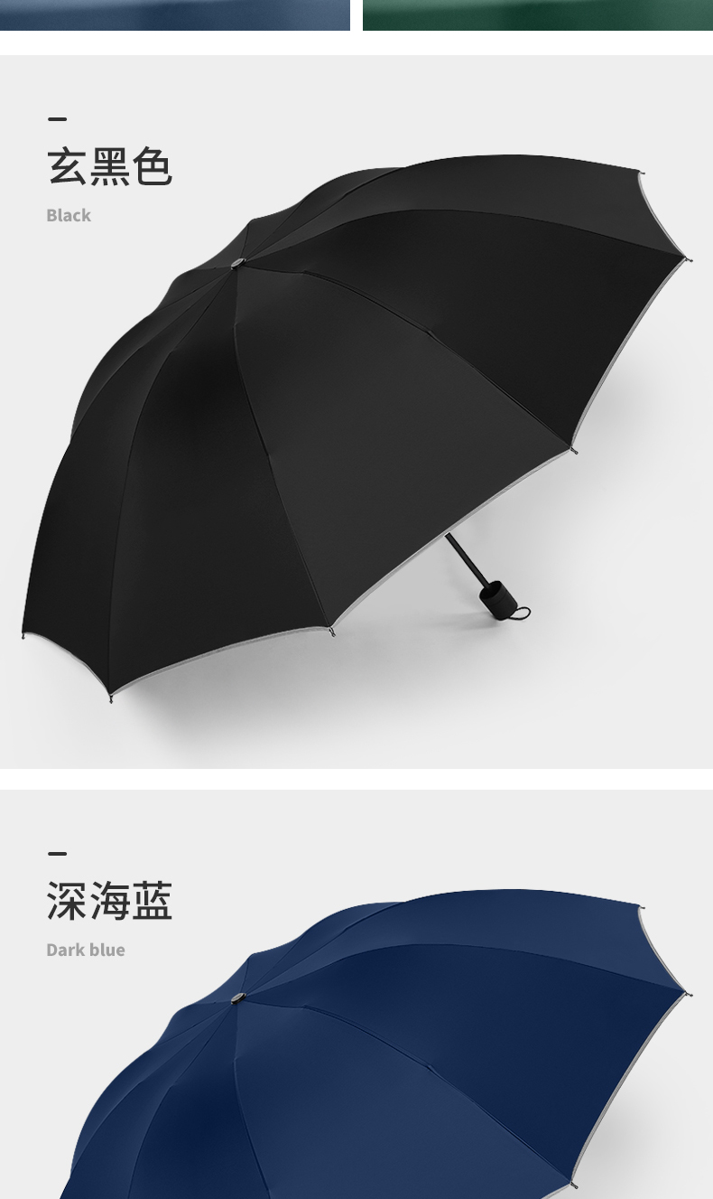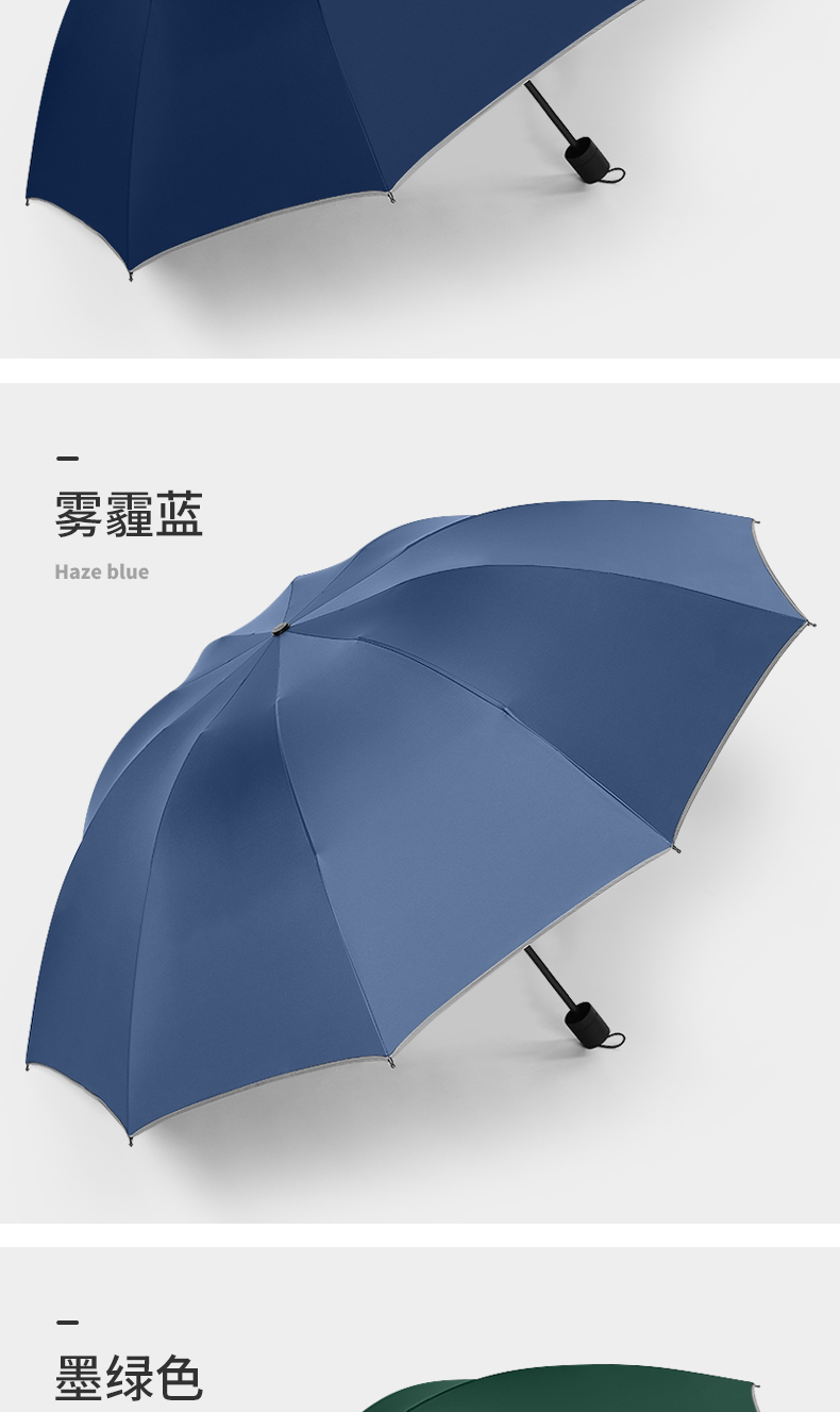 美度加大版双人晴雨伞男商务折叠伞M3012 68cm*10k/把 雾霾蓝