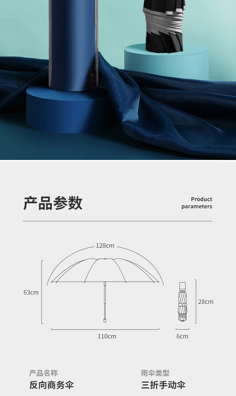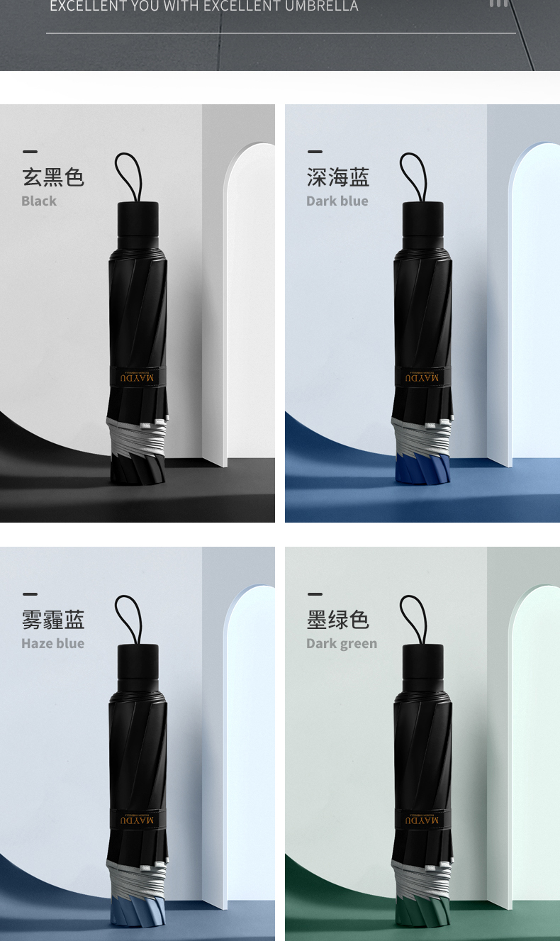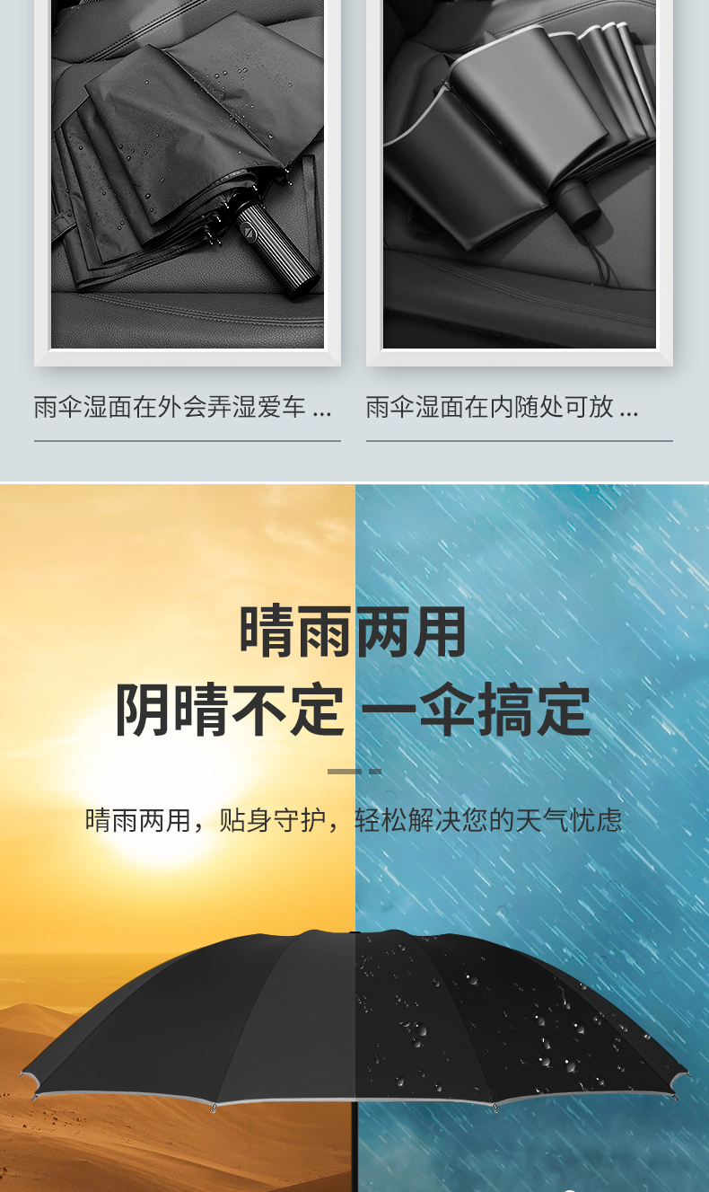 美度加大版双人晴雨伞男商务折叠伞M3012 68cm*10k/把 雾霾蓝