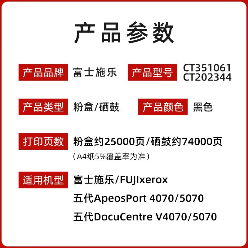 富士胶片(FUJI FILM) CT202344黑色墨粉筒(适用五代V 4070/5070)单位:个 黑色