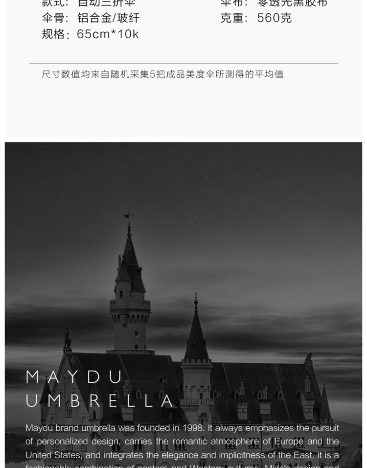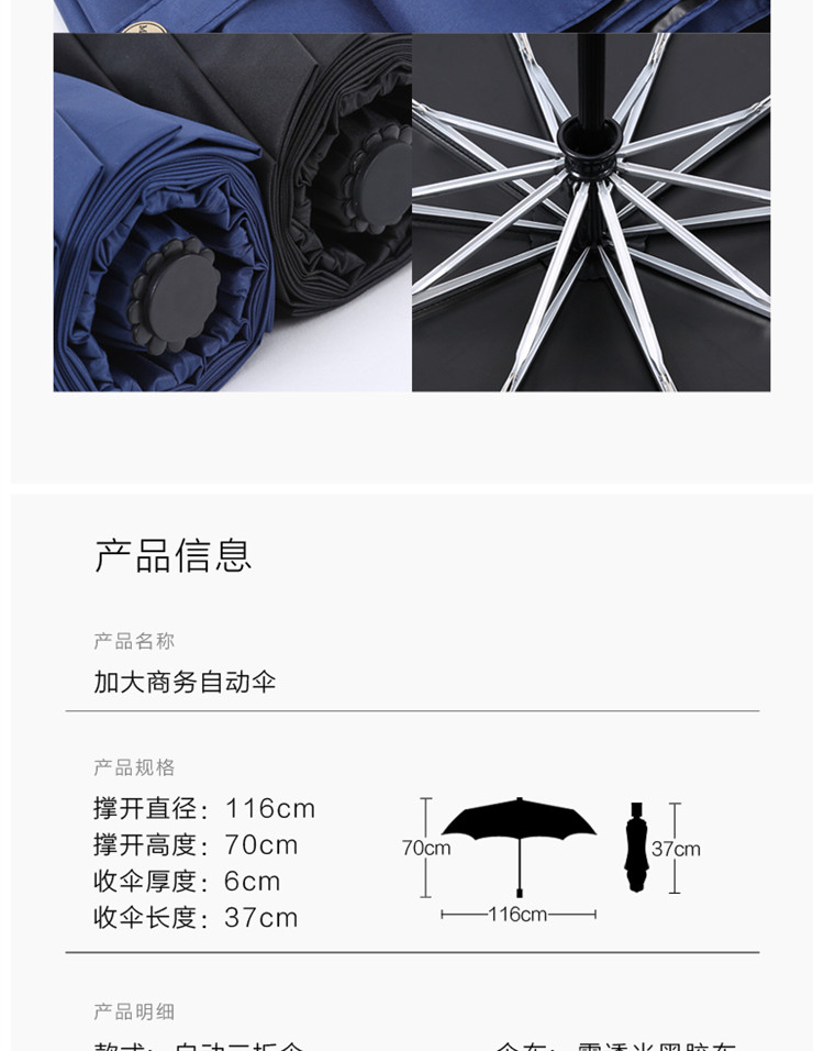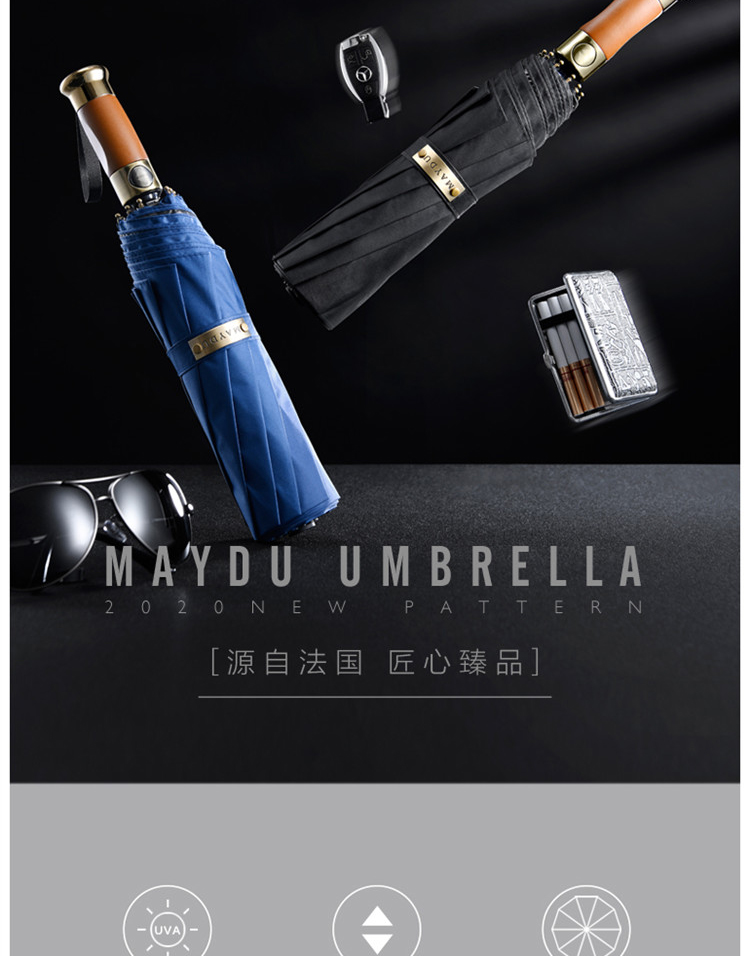 美度大号全自动折叠太阳伞M3356 63.5cm*10k/把 黑色