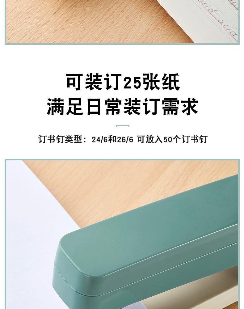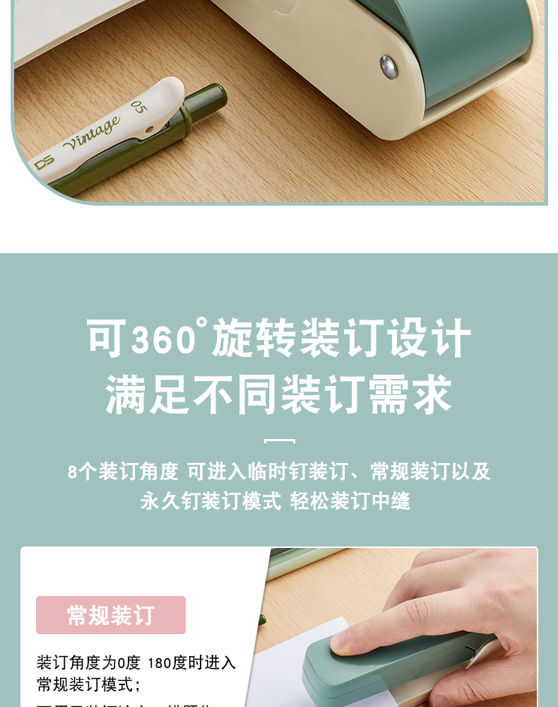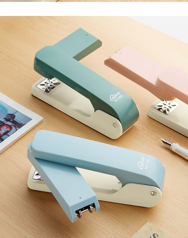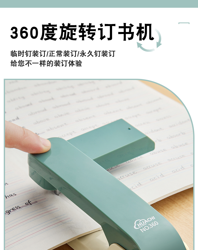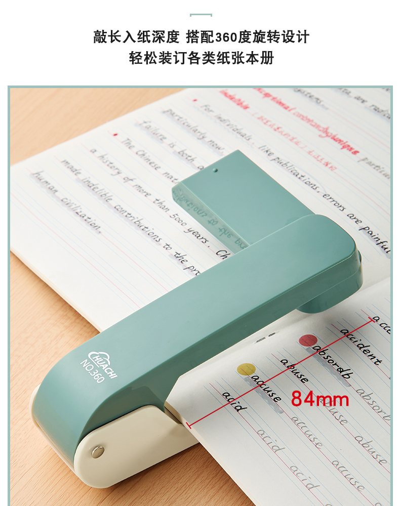 三年二班 360度可旋转订书机学生用大号家用中缝订书器装订机多功能省力自动订厚书钉书机/个 莫兰迪蓝色