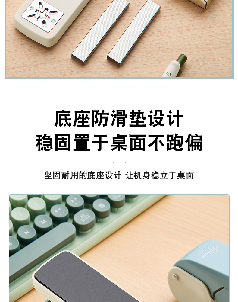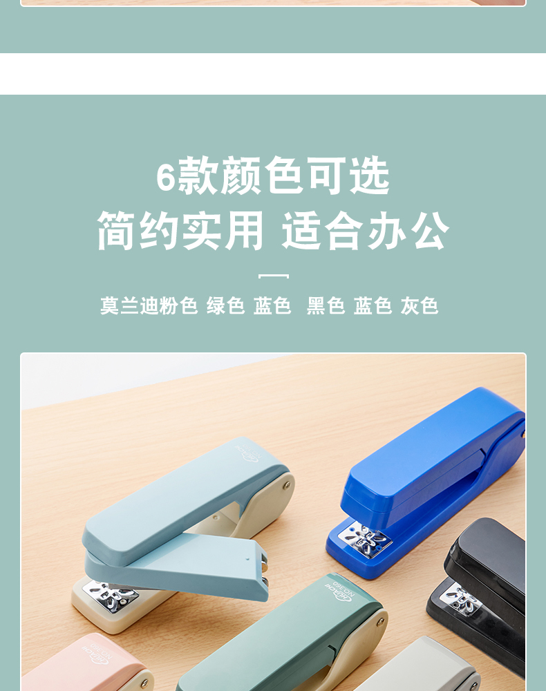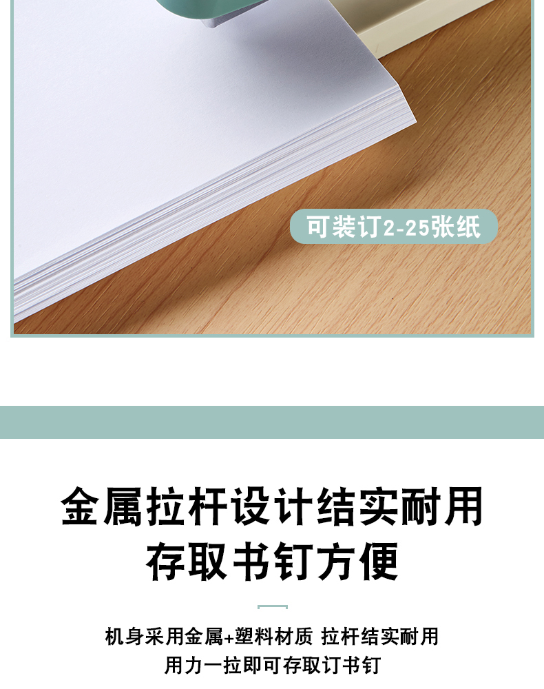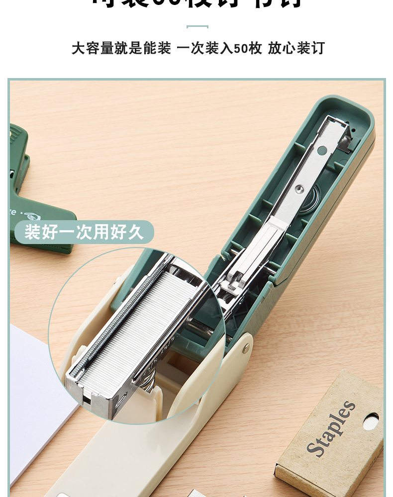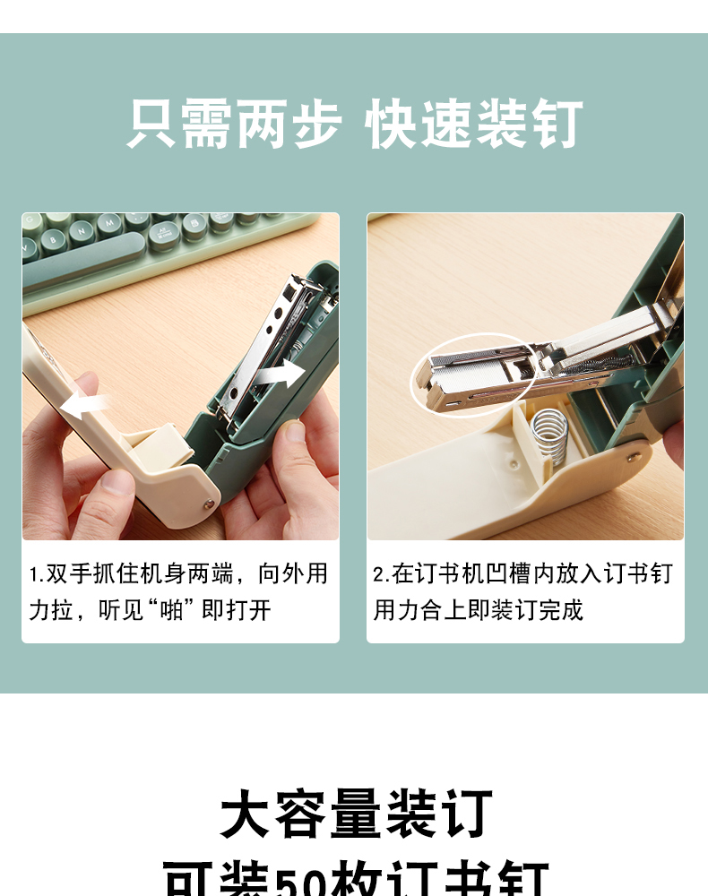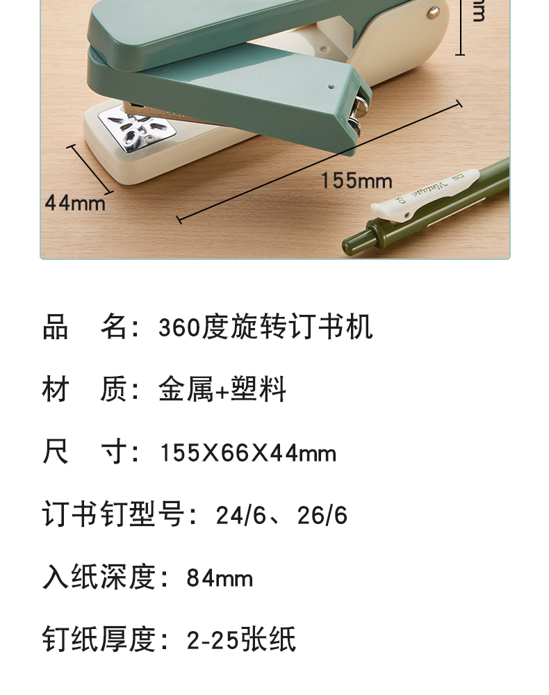 三年二班 360度可旋转订书机学生用大号家用中缝订书器装订机多功能省力自动订厚书钉书机/个 莫兰迪蓝色