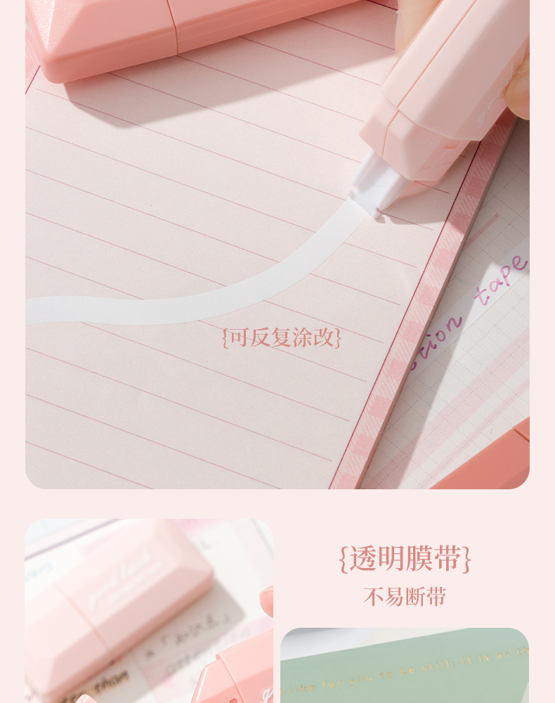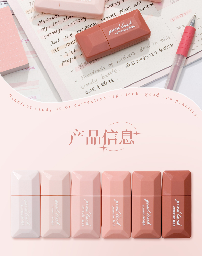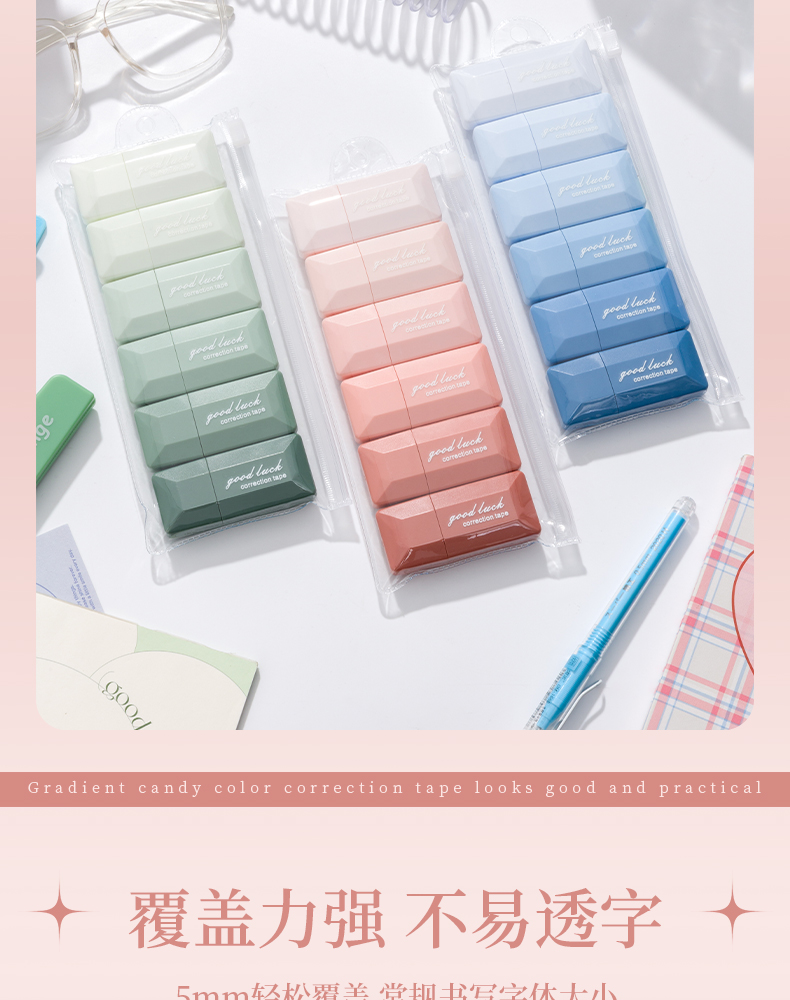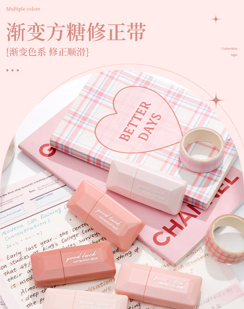 三年二班 渐变方糖高颜值修正带学生用涂改带大容量改正带修改带改错带初中生学习用品/套 渐变粉6个装