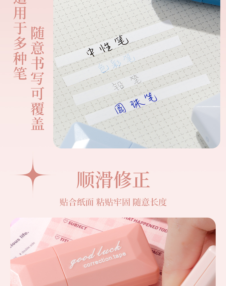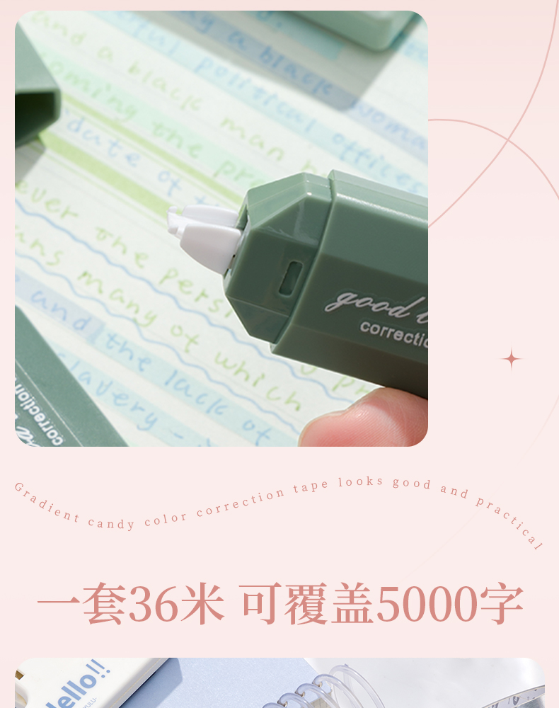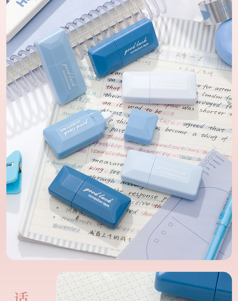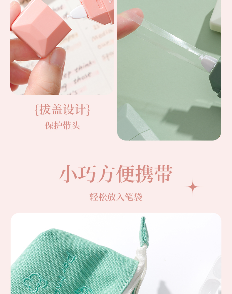 三年二班 渐变方糖高颜值修正带学生用涂改带大容量改正带修改带改错带初中生学习用品/套 渐变粉6个装