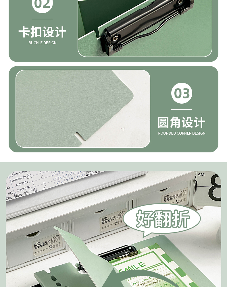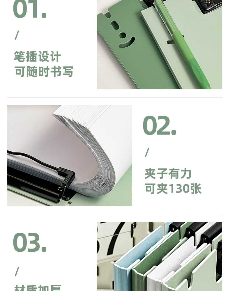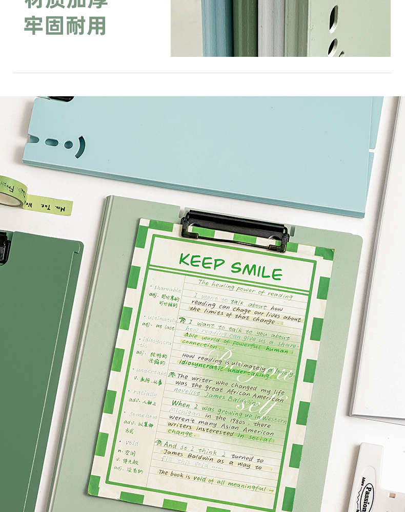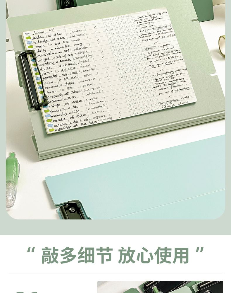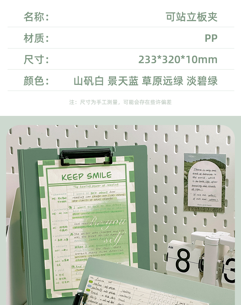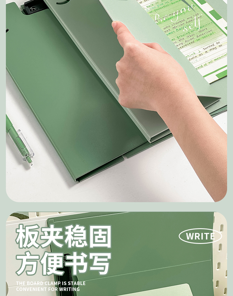三年二班A4可站立文件夹写字垫板 学生试卷资料收纳册办公用品资料夹高颜值整理夹/个 A4-山矾白