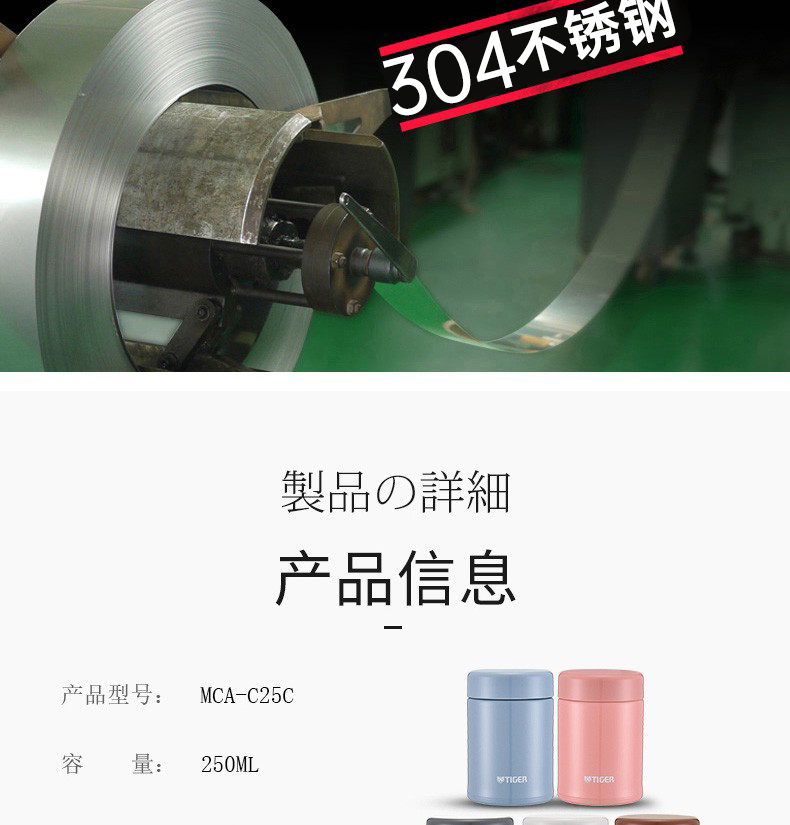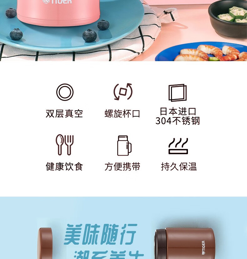 虎牌(TIGER)不锈钢真空保温杯 焖烧杯迷你多用型杯子 MCA-C25C /个 250ML 宝石蓝