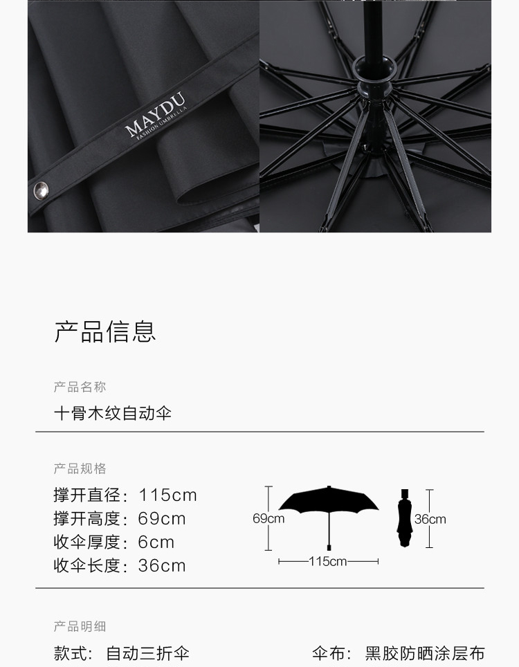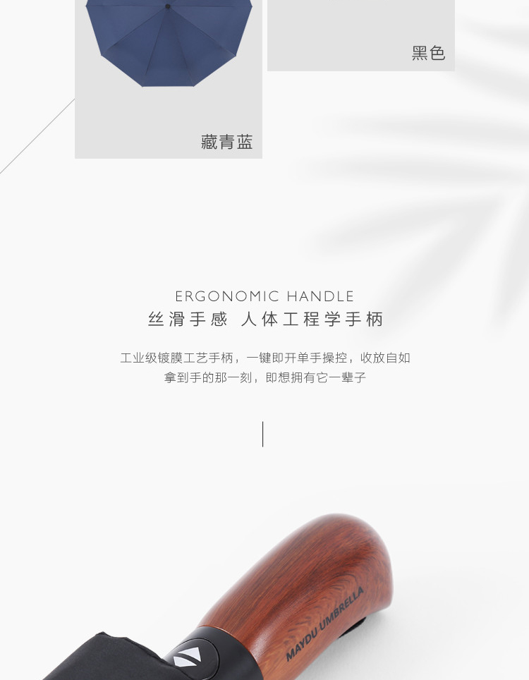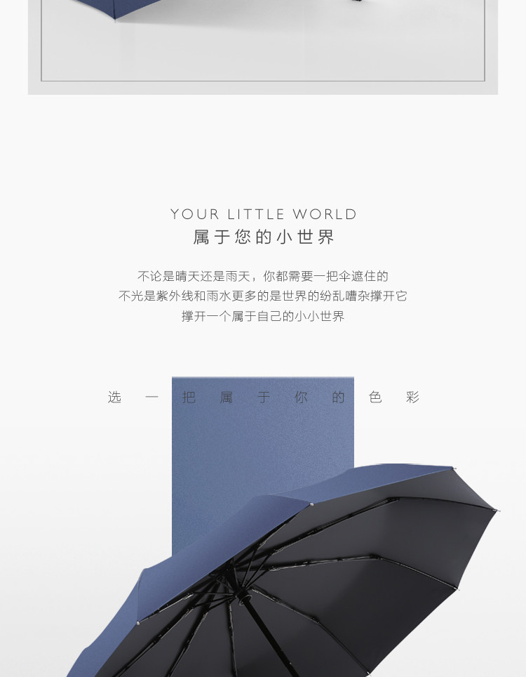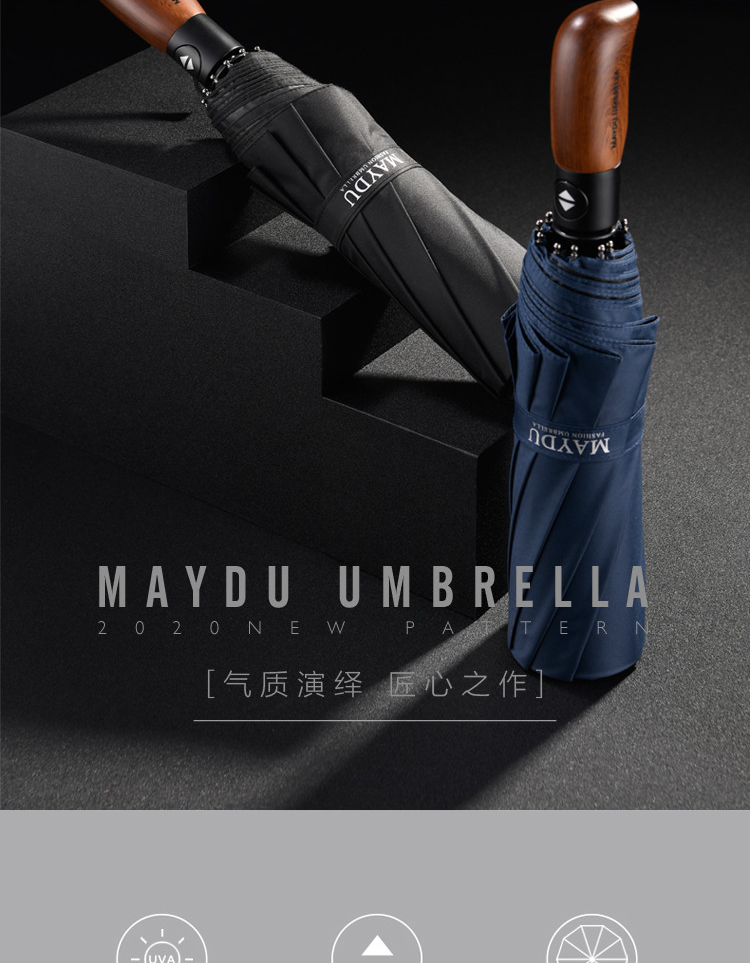 美度黑胶防晒遮阳伞三折全自动晴M3366 63.5cm*10k/把 蓝色