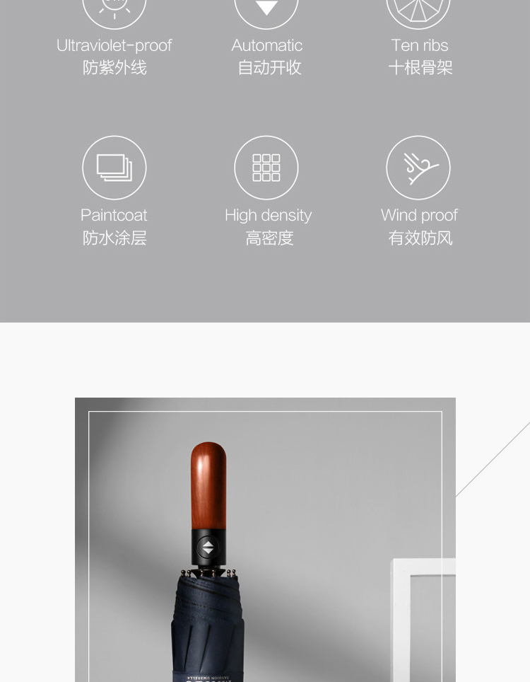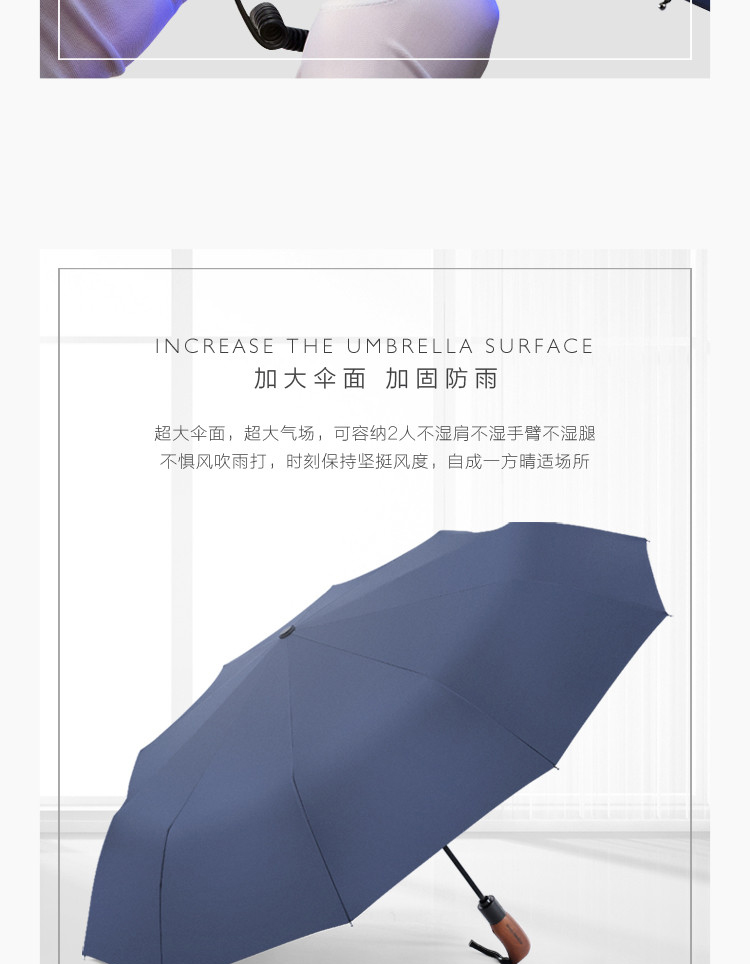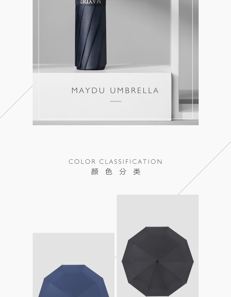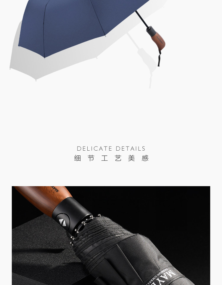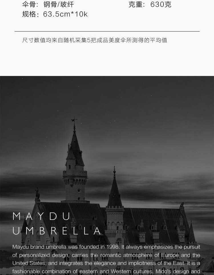 美度黑胶防晒遮阳伞三折全自动晴M3366 63.5cm*10k/把 蓝色