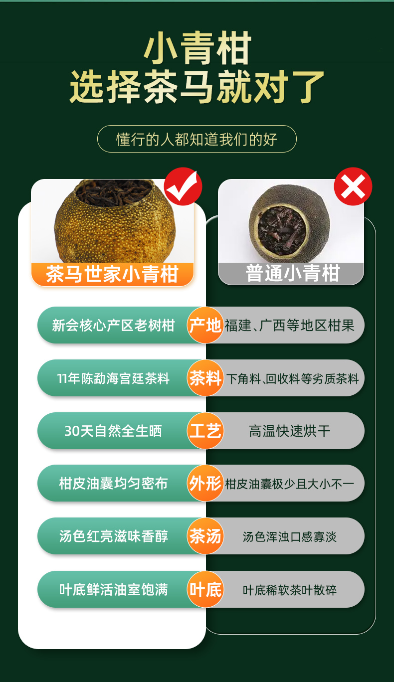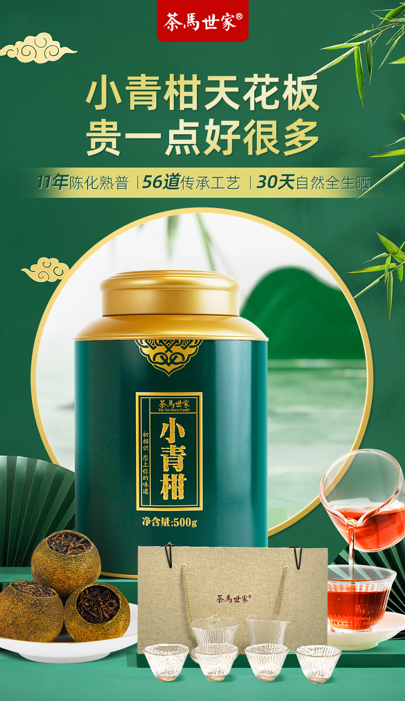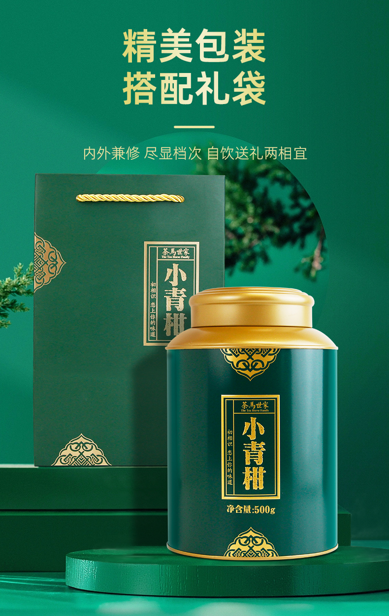 茶马世家新会天马小青柑陈皮普洱茶熟茶叶柑普茶礼盒装 一斤大份量装加高端竖纹茶具/罐 绿茶