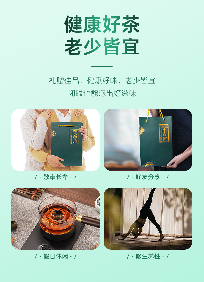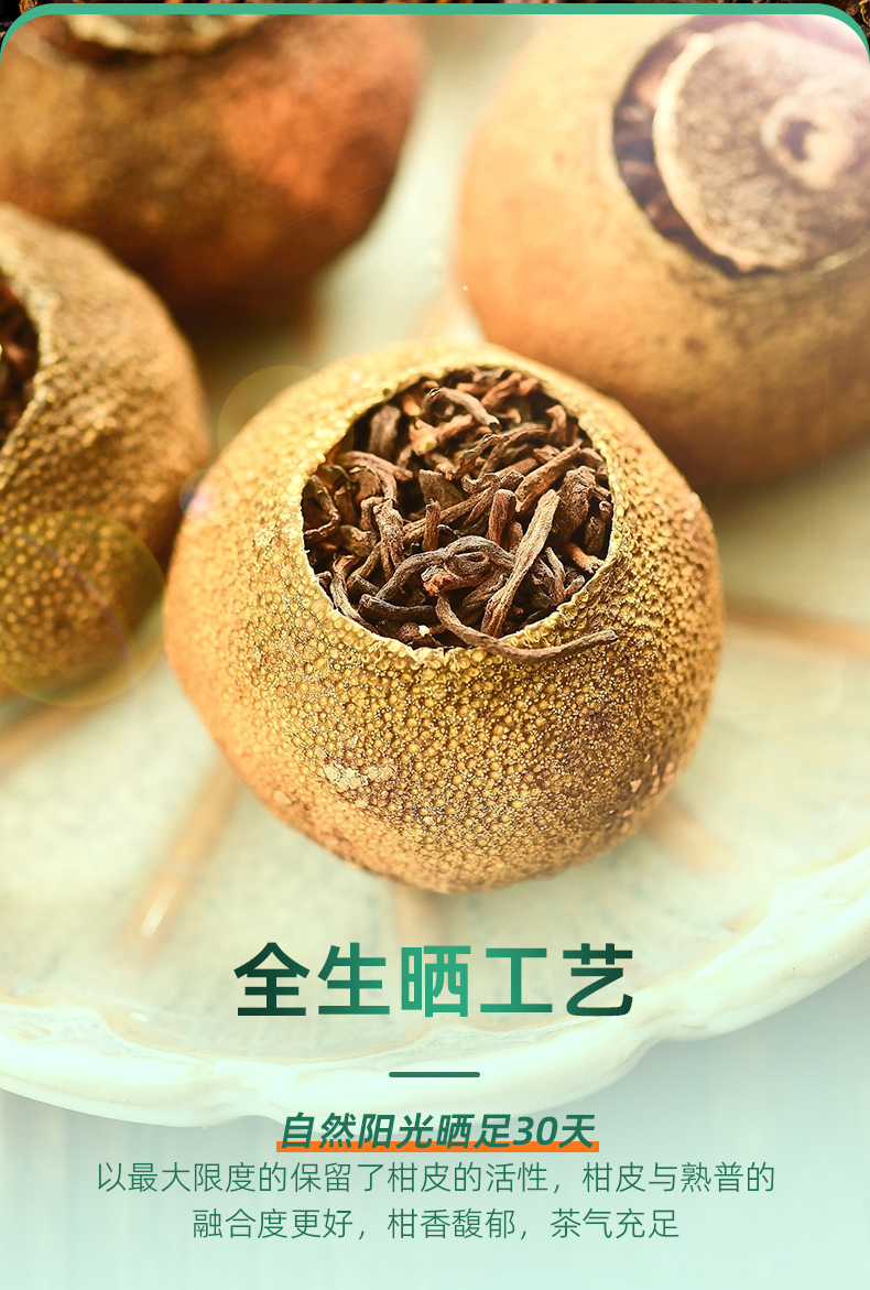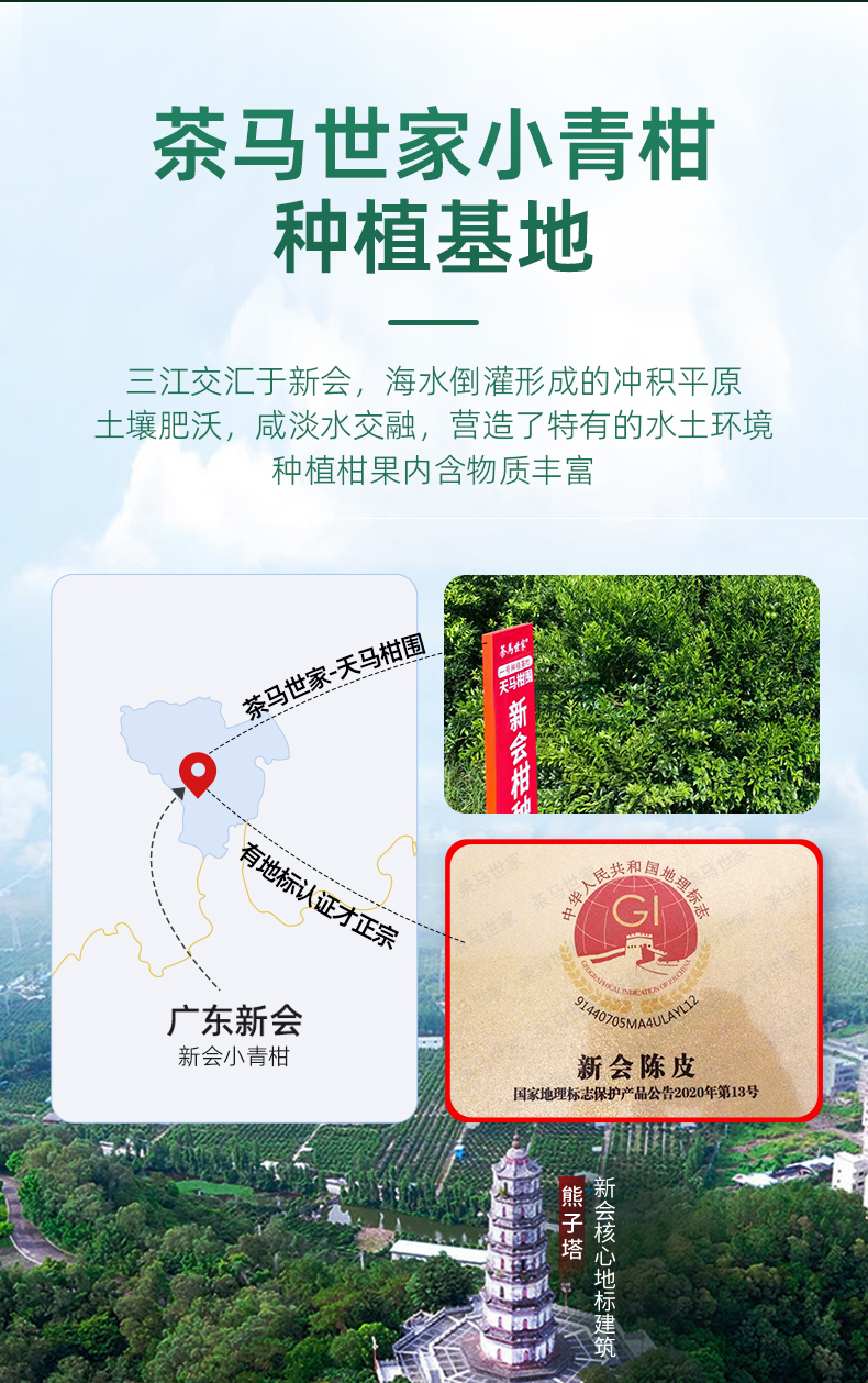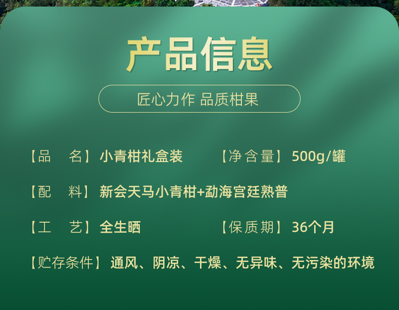 茶马世家新会天马小青柑陈皮普洱茶熟茶叶柑普茶礼盒装 一斤大份量装加高端竖纹茶具/罐 绿茶