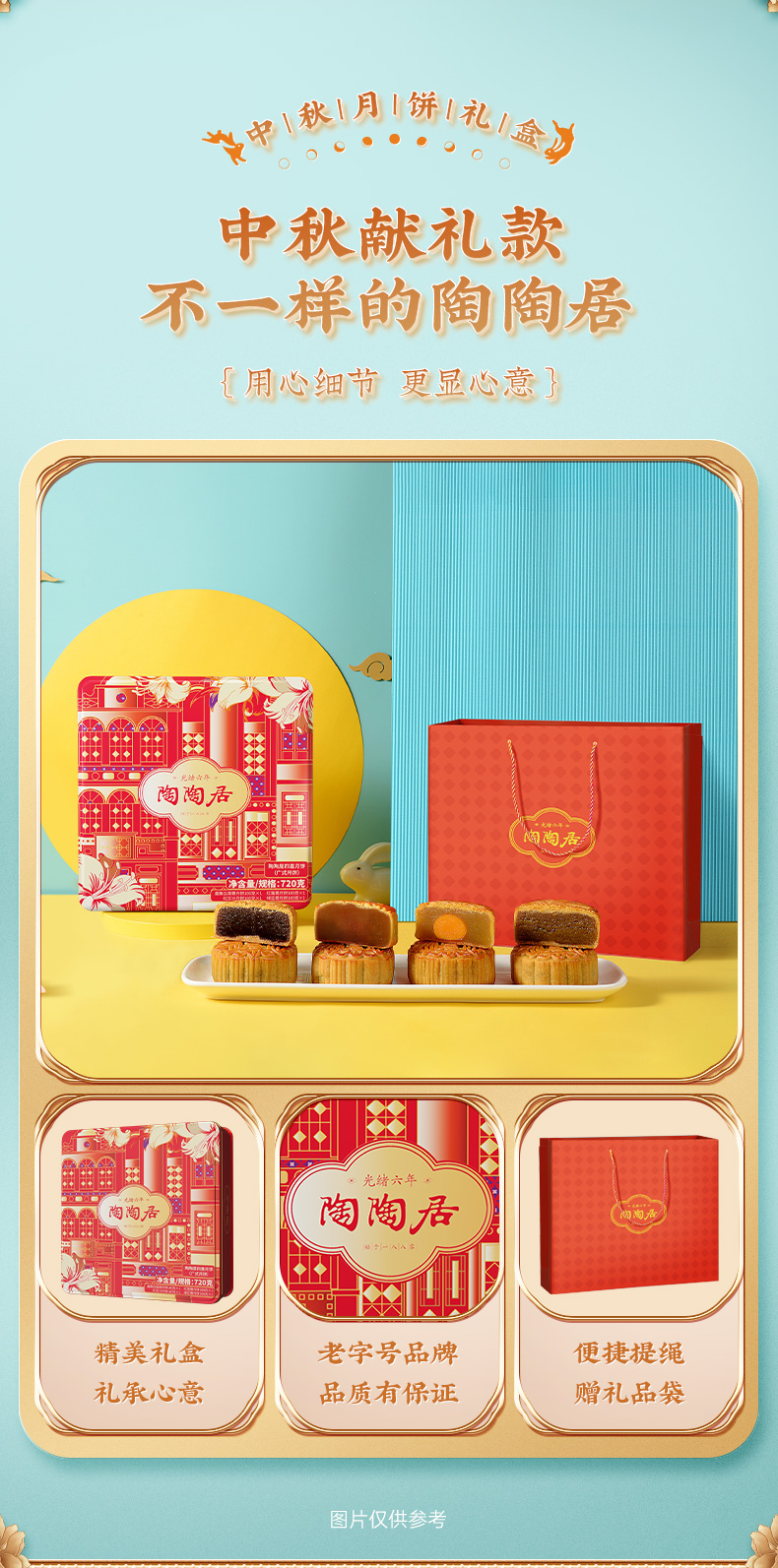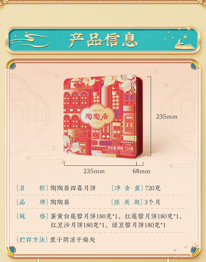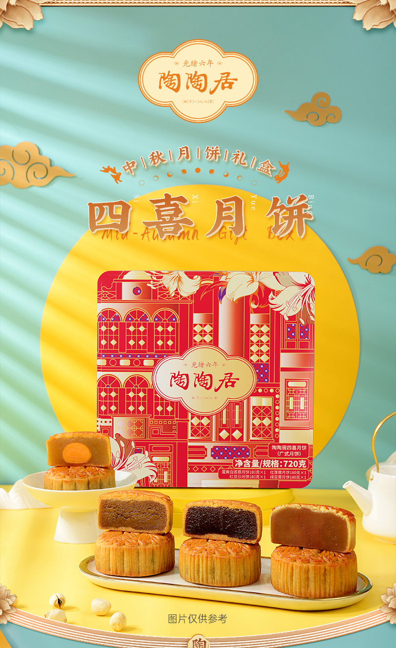 陶陶居四喜月饼720g/盒 铁盒