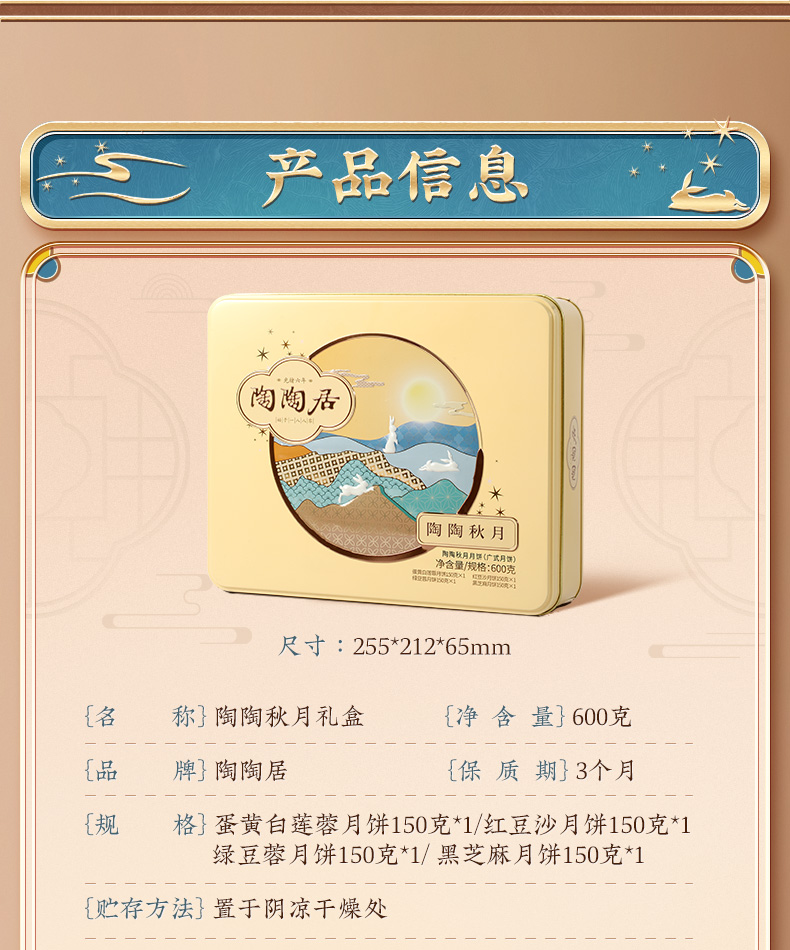 陶陶居陶陶秋月月饼600g单位:盒 铁盒