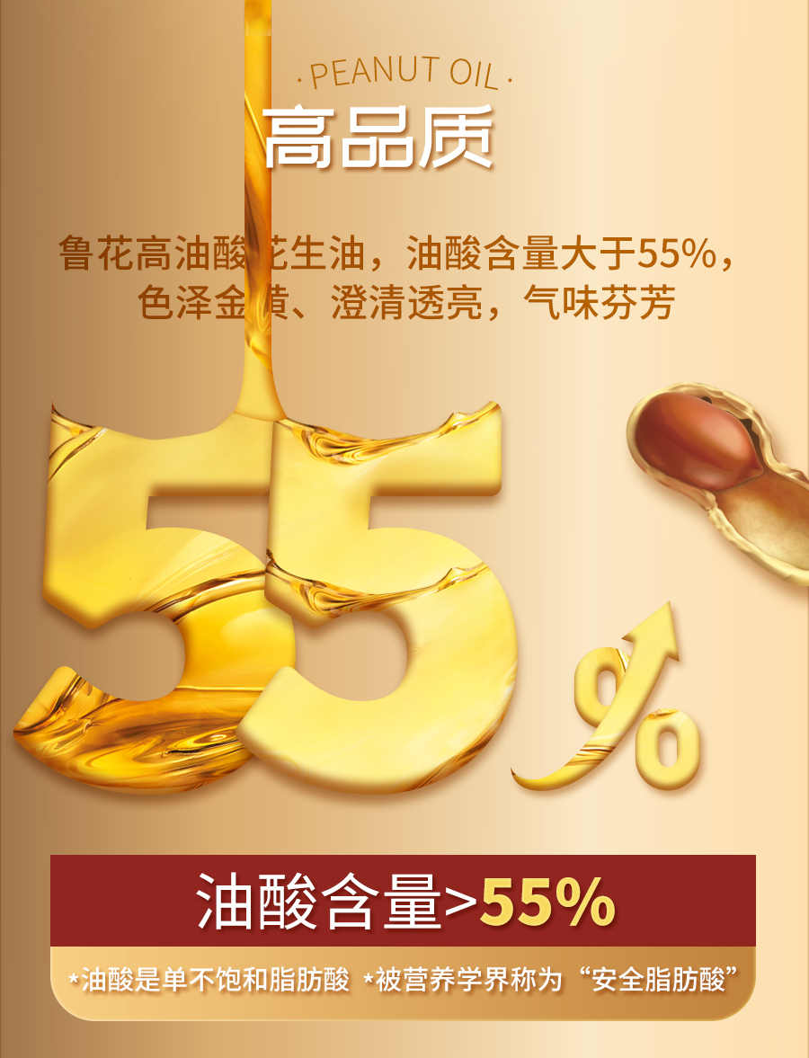 鲁花 油酸多多花生油 900mL 单位:桶 香槟黄