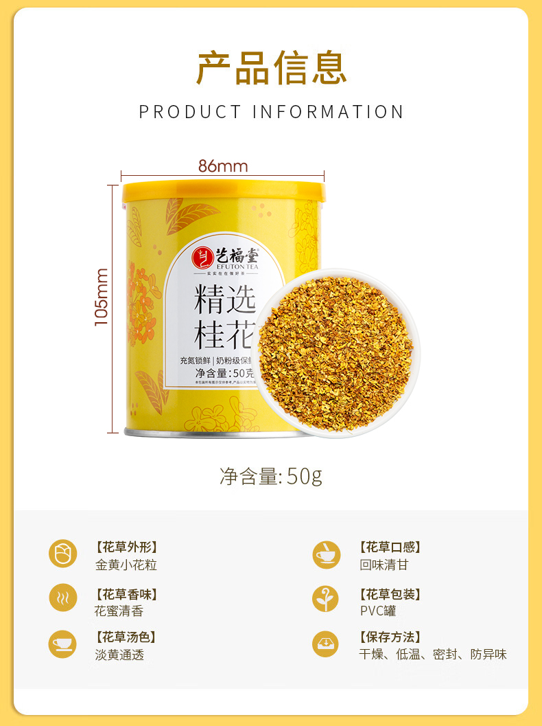 艺福堂精选桂花50g/罐(氮气罐) (单位:罐)香槟黄