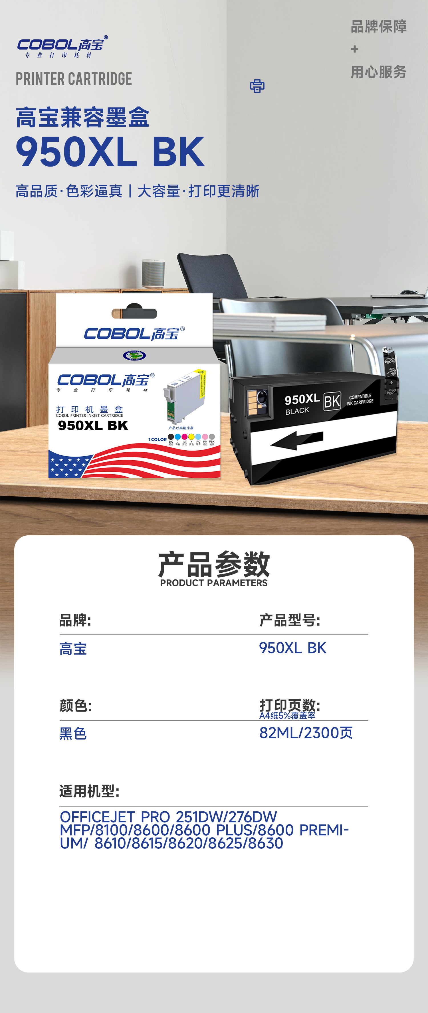 高宝(COBOL)950XL BK黑色墨盒 适用惠普HP8100/8600 (单位:支) 黑色