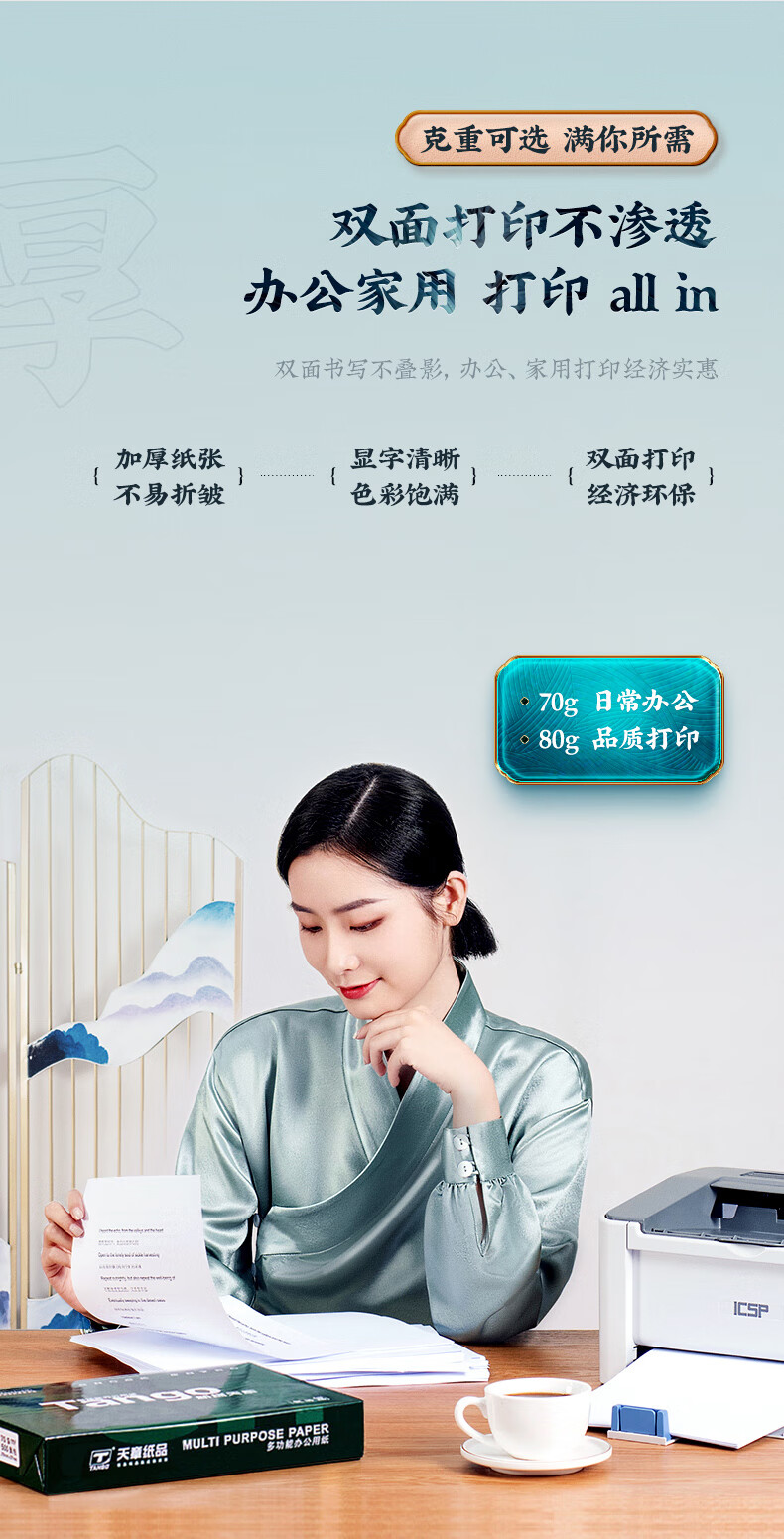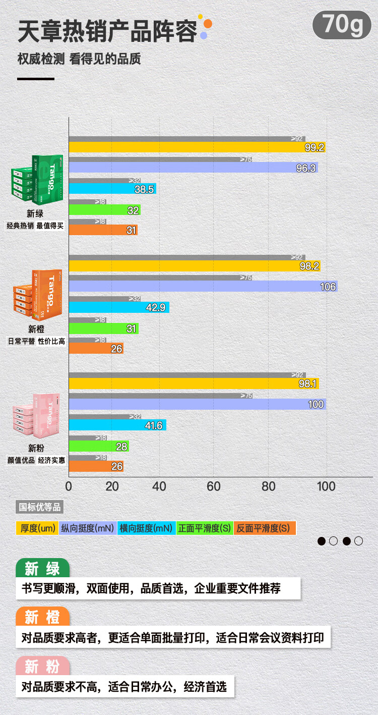 天章 (TANGO)新绿天章A4打印纸 70g 500张*8包 双面打印复印纸 箱 白色