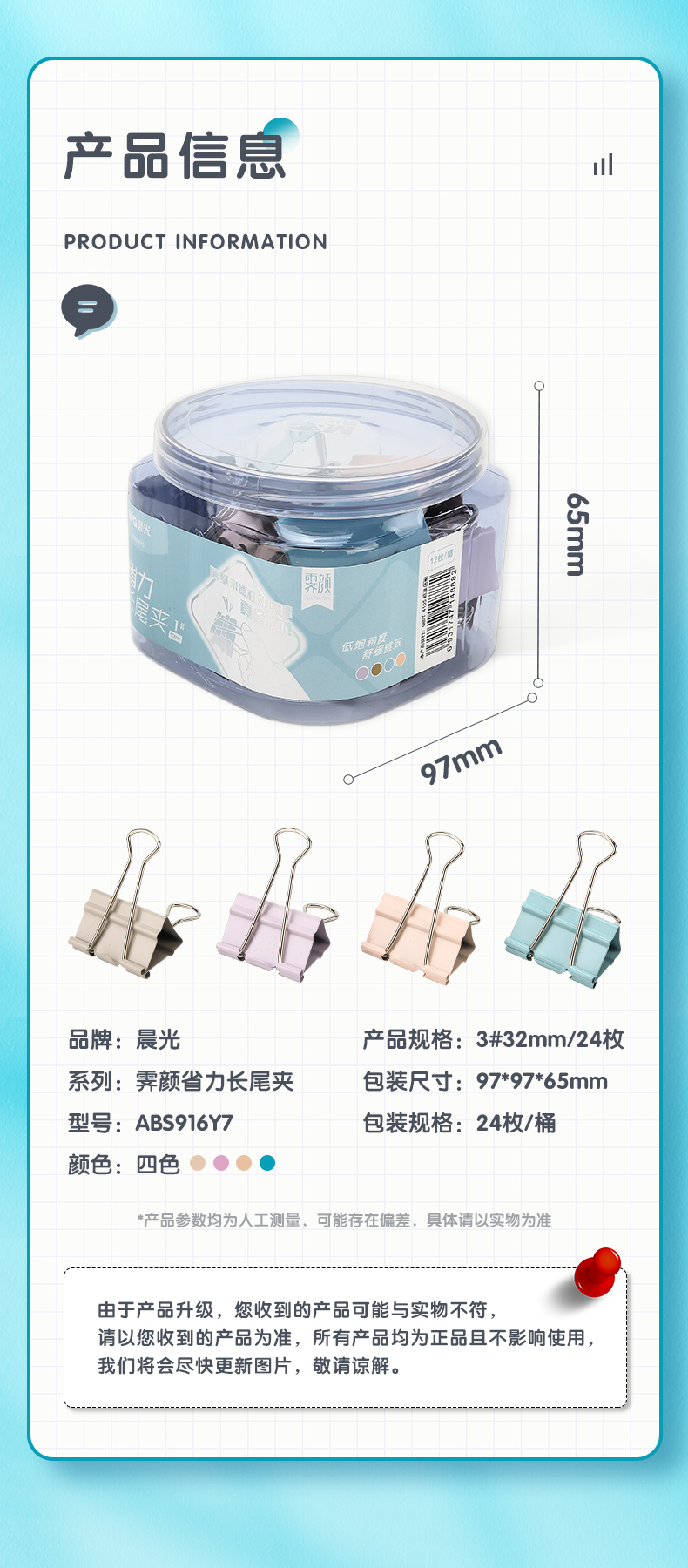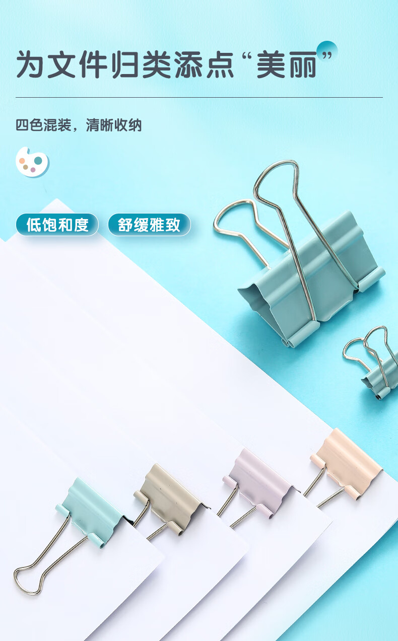 晨光(M&G)文具24只32mm省力长尾夹票夹 3#彩色金属燕尾夹 ABS916Y7 罐 彩色